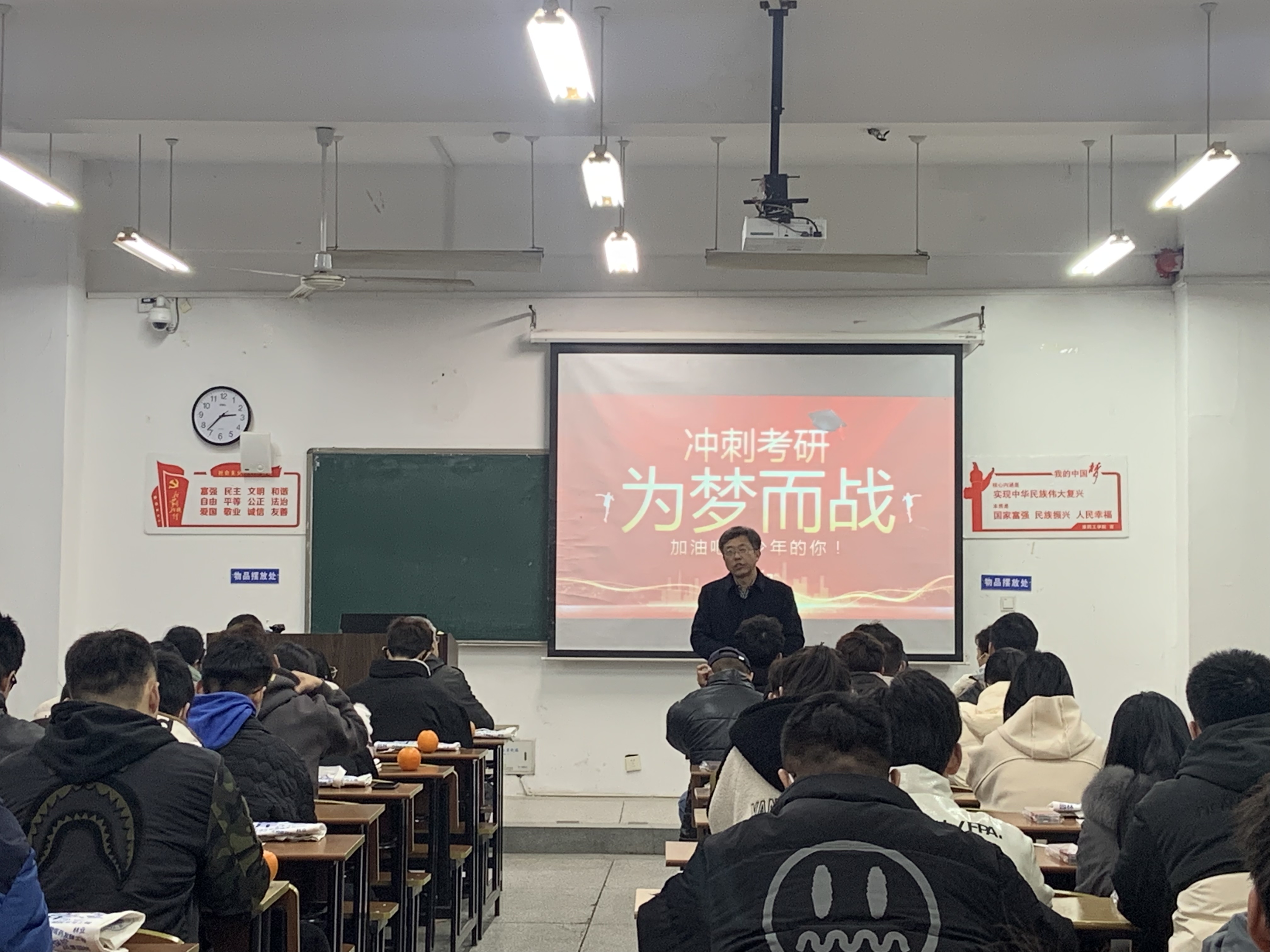 12月8日下午,生科学院于22108开展学生考研慰问活动。生科学院党委朱永江书记、党委副书记副院长夏雪芹、副院长王云鹏、院长助理黄志楠、关工委周青教授、学工办主任余文冲、团委书记王晓乐、辅导员张爱芳、吴静、刘林新出席了此次活动,生科学院各专业考研学生代表近100人参加了活动。慰问活动由夏雪芹副书记主持。
