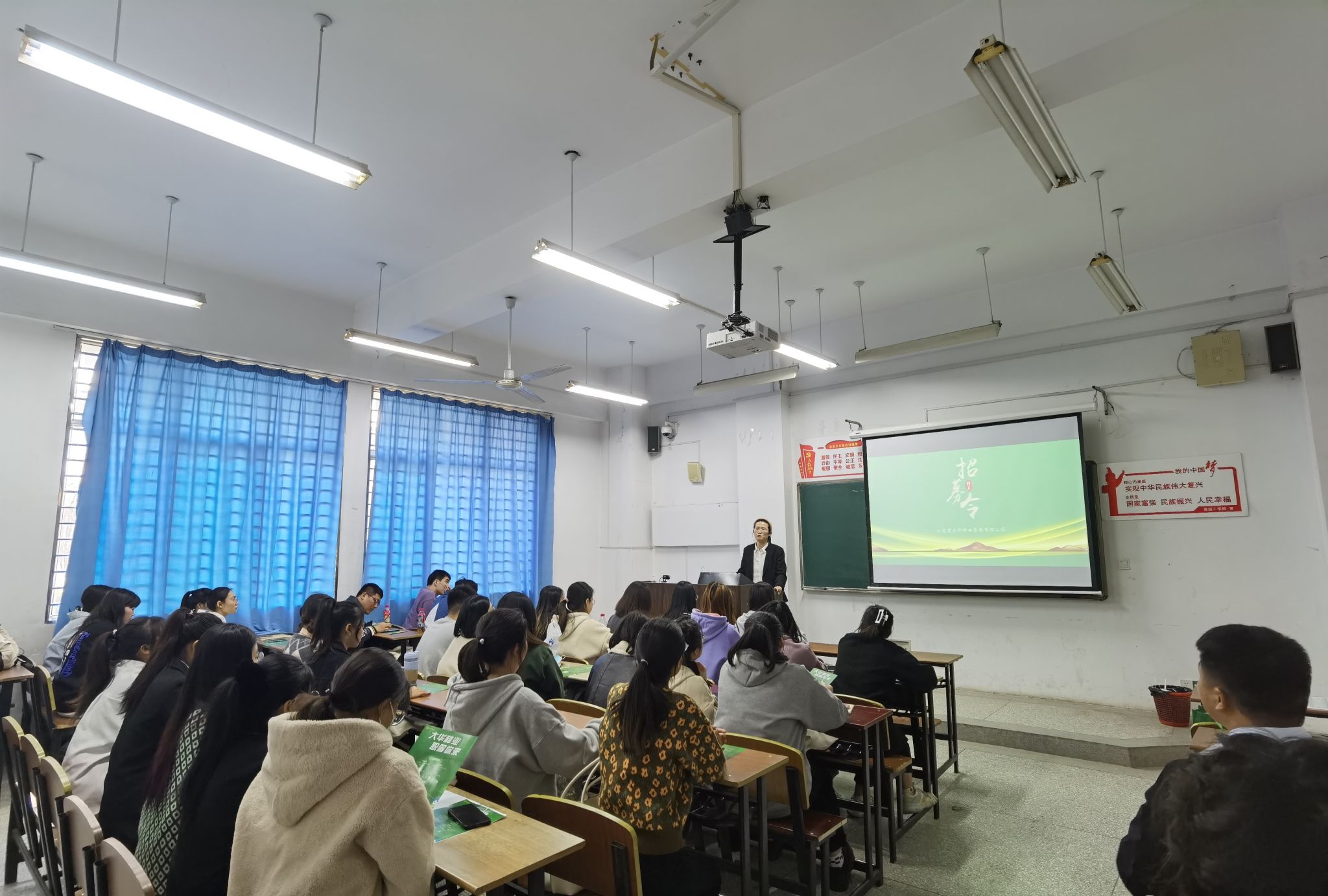 宣讲会前,大华种业集团副总经理谢宜成与学院领导进行深入交流,就双方人才联合培养、毕业生就业等问题达成一致。随后开展2023届毕业生宣讲活动。宣讲会上,负责人通过PPT展示向同学们介绍了公司概况、招聘岗位、薪资待遇等信息。宣讲结束后,负责人解答了同学们的相关问题并进行面试。
