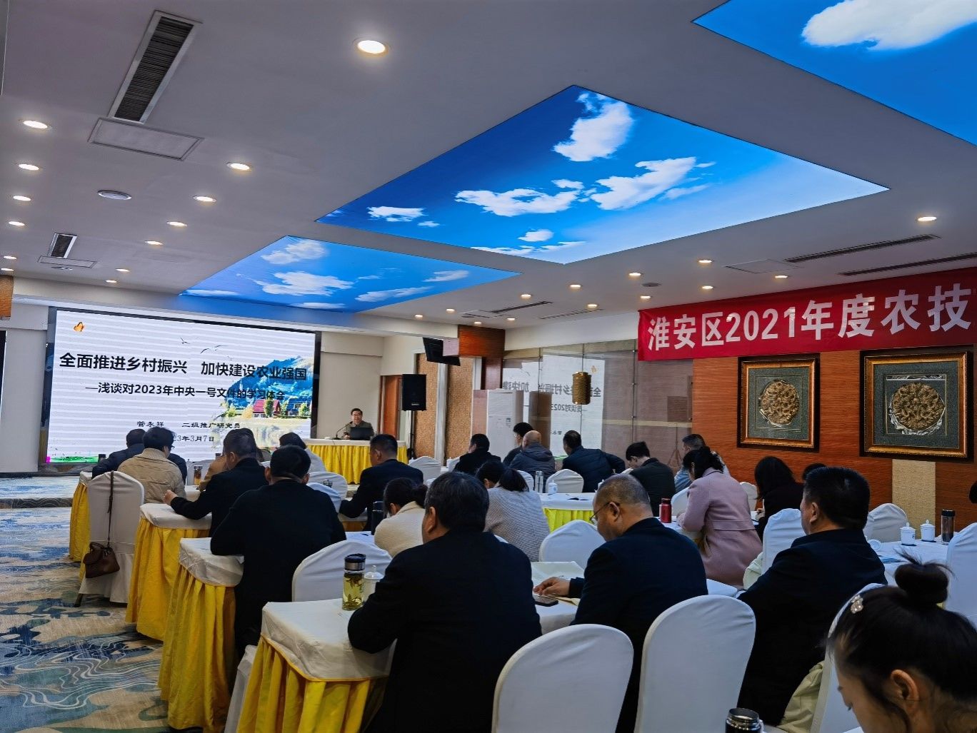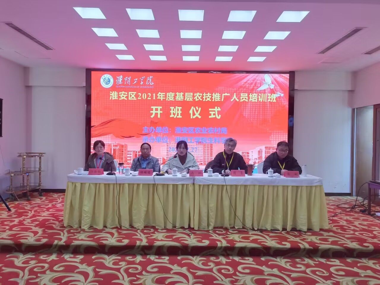 为深入学习宣传贯彻党的二十大精神,提高基层农技推广人员的业务素质和技能水平,增强基层农技推广体系为民服务的能力,全面推进乡村振兴。近日,淮安区2021年度基层农技推广人员(种植业及农艺农机)培训举行开班仪式。生命科学与食品工程学院院长王朝宇教授、督导员周青教授和淮安区农业农村局马琳副局长等出席了开班仪式。淮安区各镇、街道相关部门的干部和工作人员共91人参加了此次培训,培训分两批进行。