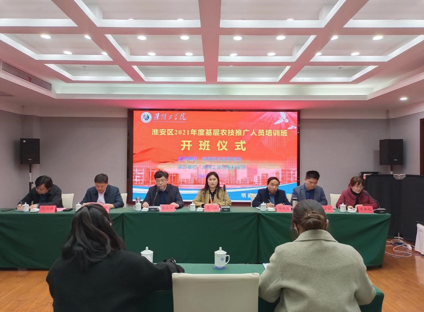 2023年2月27日-3月17日,受淮安区农业农村局委托,淮阴工学院生命科学与食品工程学院承办了为期三周的淮安区2021年度(因疫情延期)农技推广人员(种植业)培训和(养殖业)培训,共计151名农技推广人员参加了系列培训,本次培训分三批次进行。淮阴工学院生命科学与食品工程学院党委书记朱永江教授、院长王朝宇教授、陈新红教授、周青教授和淮安区农业农村局副局长马琳、科教科科长侍瑞高、科教科副科长刁广华等分别出席三批次的开班仪式。