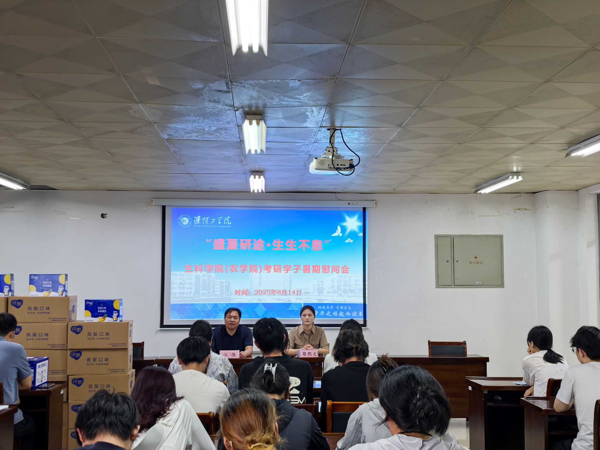 8月14日上午,生科学院(农学院)在28208会议室开展“盛夏研途 生生不息”考研学子暑期慰问活动,为留校备战考研的学子送去关怀与鼓励。学院党委书记汪伟、党委副书记、副院长蔡熙文、学工办主任余文冲、22级辅导员苏子亮及暑期留校学生代表参加活动。