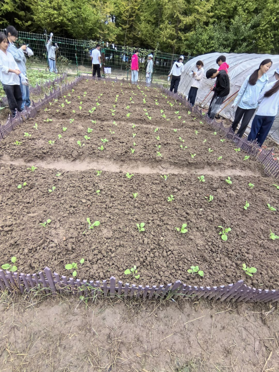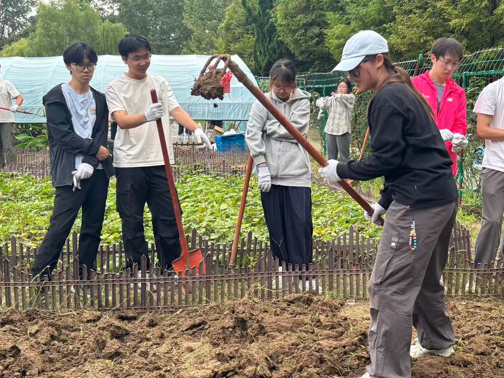 精心作畦,构筑生长蓝图。作畦环节是对团队协作与精细操作的集中考验。各小组需根据地势和灌溉需求,规划并筑起整齐的菜畦。拉线测量确保笔直,铁锹起土堆高畦面,再用耙子细致地将表面整理平整。高低一致、宽窄均匀的田畦,不仅是田间美丽的风景线,更是关乎排水、通风和光热利用的关键技术。