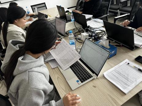 大豆组在淮安市农科院投身大豆室内考种实践。通过系统测量株高、底荚高、分支数、有效荚数等性状,熟练掌握考种标准流程,同步学习品种分类、绒毛色、株型等理论知识,在脱粒、百粒重测定与数据整理中,深化了对合理密植与产量关系的认知。