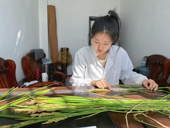 水稻组在淮安市农科院深度参与水稻考种全流程。在导师悉心指导下,从田间选取代表性植株,精确测量株高、剑叶长度、有效分蘖数等关键农艺性状,到室内脱粒后细致鉴定结实率、千粒重、垩白度等品质与产量性状,同学们的精益求精,为优良新品种筛选筑牢数据根基。
