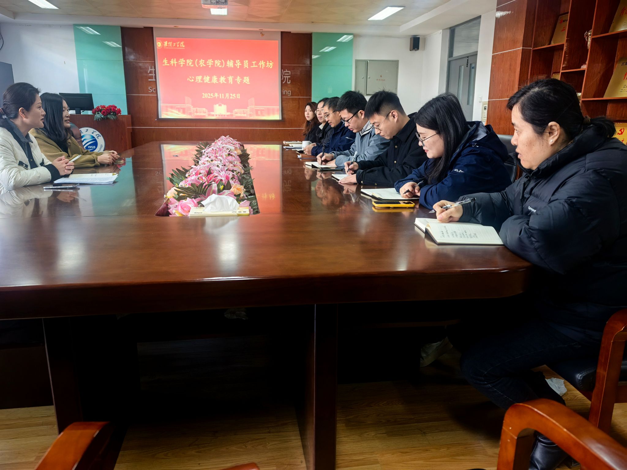 为进一步筑牢大学生心理健康防护屏障,全面提升学工队伍心理育人专业素养与实践能力,11月25日上午,生科学院(农学院)举办辅导员工作坊,聚焦大学生谈心谈话主题开展专题培训。学院特别邀请学生工作处大学生心理健康中心主任咸大伟担任主讲嘉宾,学院党委副书记蔡熙文及全体辅导员参加培训。