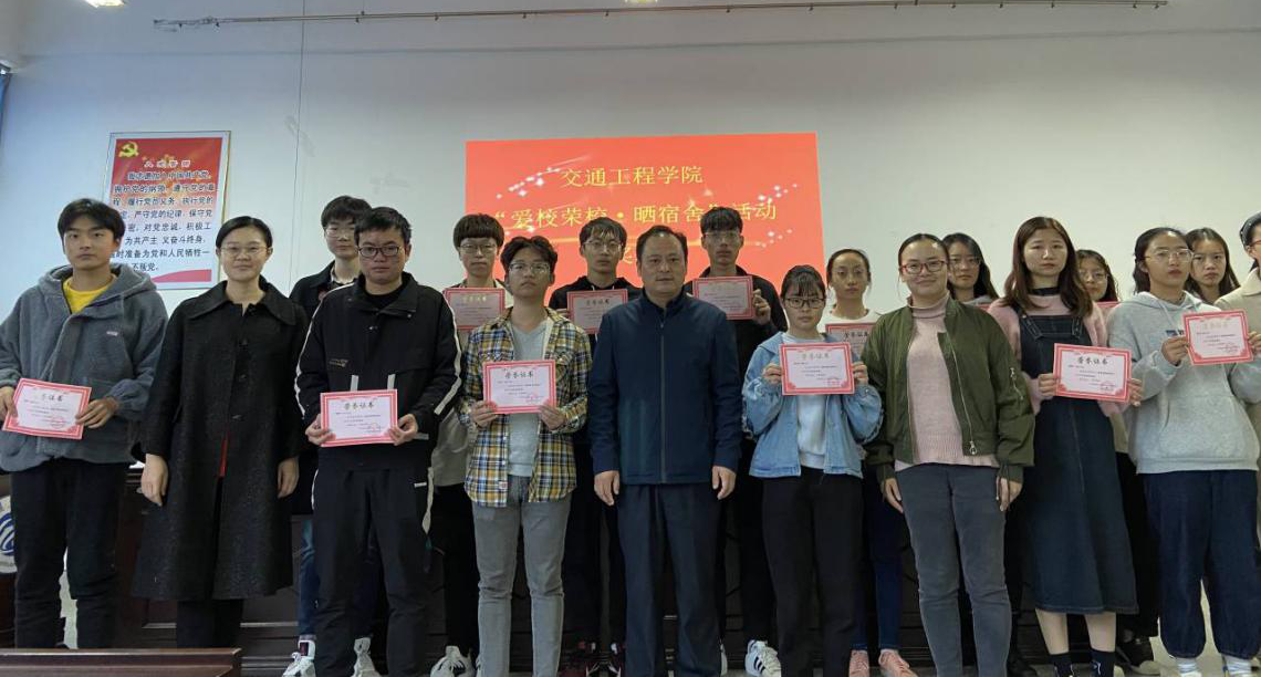 11月12日,交通工程学院于24217教室举行了 “爱校荣校·晒宿舍”活动颁奖仪式。交通工程学院党委副书记、副院长余文明、学工办主任韩笑和辅导员耿纪莹老师出席了本次颁奖仪式,并为获奖的优秀宿舍进行颁奖。
