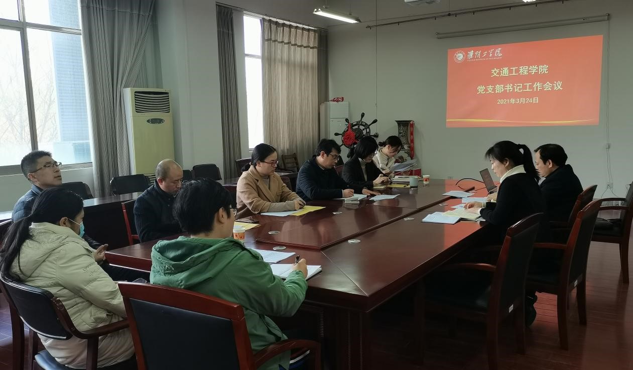 2021年3月24日下午,交通工程学院在行远楼213会议室开展了党支部书记工作会议。参加本次会议的人员有交通工程学院党委书记桑海云、院党委副书记、副院长余文明以及学院各党支部书记。本次会议由桑海云书记主持。