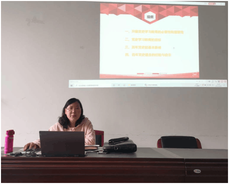 王国莲教授以《从党史中汲取继续前进的智慧和力量》为题,分别从“开展党史学习教育的必要性和重要性、党史学习教育的目标、百年党史的基本脉络、百年党史蕴含的经验与启示”四个方面,系统阐释了党的光辉历程,取得的伟大成就,内涵丰富、重点突出,对于帮助学院深刻领会习近平总书记重要讲话精神,深入开展党史学习教育具有很强的指导意义。