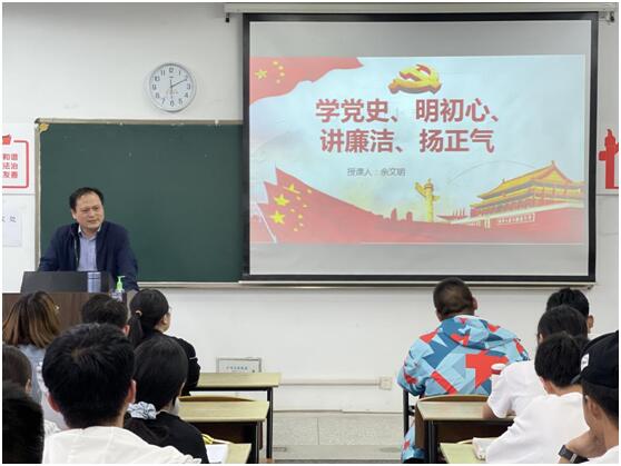 5月12日晚18:00,交通工程学院党委副书记余文明主讲《学党史、明初心、讲廉洁、扬正气》的专题讲座,75名入党积极分子参加学习。