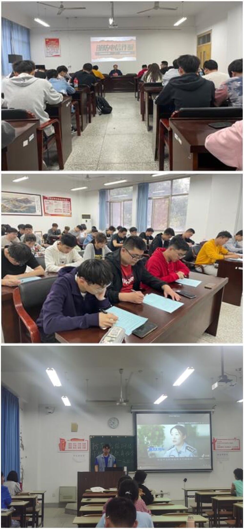 在“五个一”系列活动开展过程中。学院组织学生开展签名承诺活动,实现防诈教育宣传全覆盖。同时,学院开展了问卷调查活动,更有针对性地开展防范电信网络诈骗有关工作。在全面了解学院学生防诈知识的基础上,学院组织每班召开主题班会,以诈骗案例讲解、观看防诈宣传教育影片等多样化的形式进行深刻的警示教育。为了加强防诈宣传教育的影响,学院举行了防诈专题报告会,学院领导为学生开展防诈骗教育,确保防范电信网络诈骗常识的深入普及。学院还联合学生家长共同开展防诈骗工作,全方位保障学生生命财产安全。
