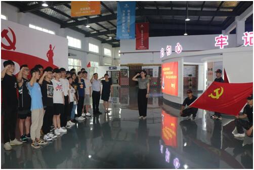 2021年6月3日上午8:00,交通工程学院全体班子成员、教师党员、学生党员代表来到了淮北抗日民主根据地纪念馆进行现场教学活动。淮北抗日民主根据地纪念馆位于江苏省宿迁市泗洪县,馆内呈展以历史图片和实物为主,辅以景观油画、雕塑、幻影成像、影视片等展示手段,旨在突出抗日战争时期老一辈无产阶级革命家和淮北党政军民万众一心,同仇敌忾、浴血奋战可歌可泣感人的英雄故事。全体党员们在桑书记的带领下,面向鲜艳的党旗重温了入党誓词。教师党员高焱、韩笑和学生党员翟仁分别汇报党史学习教育的体会和感想,桑海云书记为全体党员作了《抗战精神的历史价值和时代意义》现场党课。
