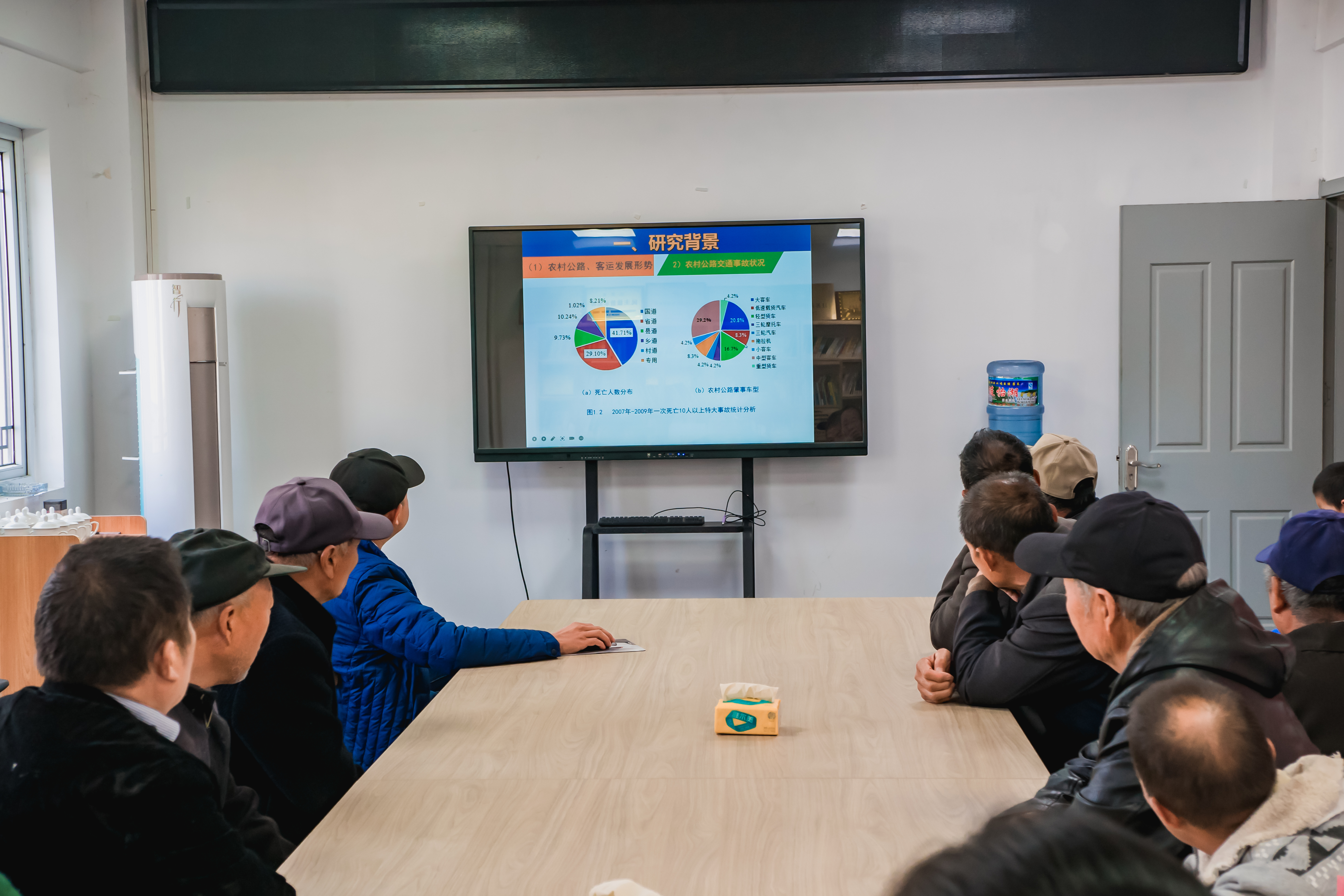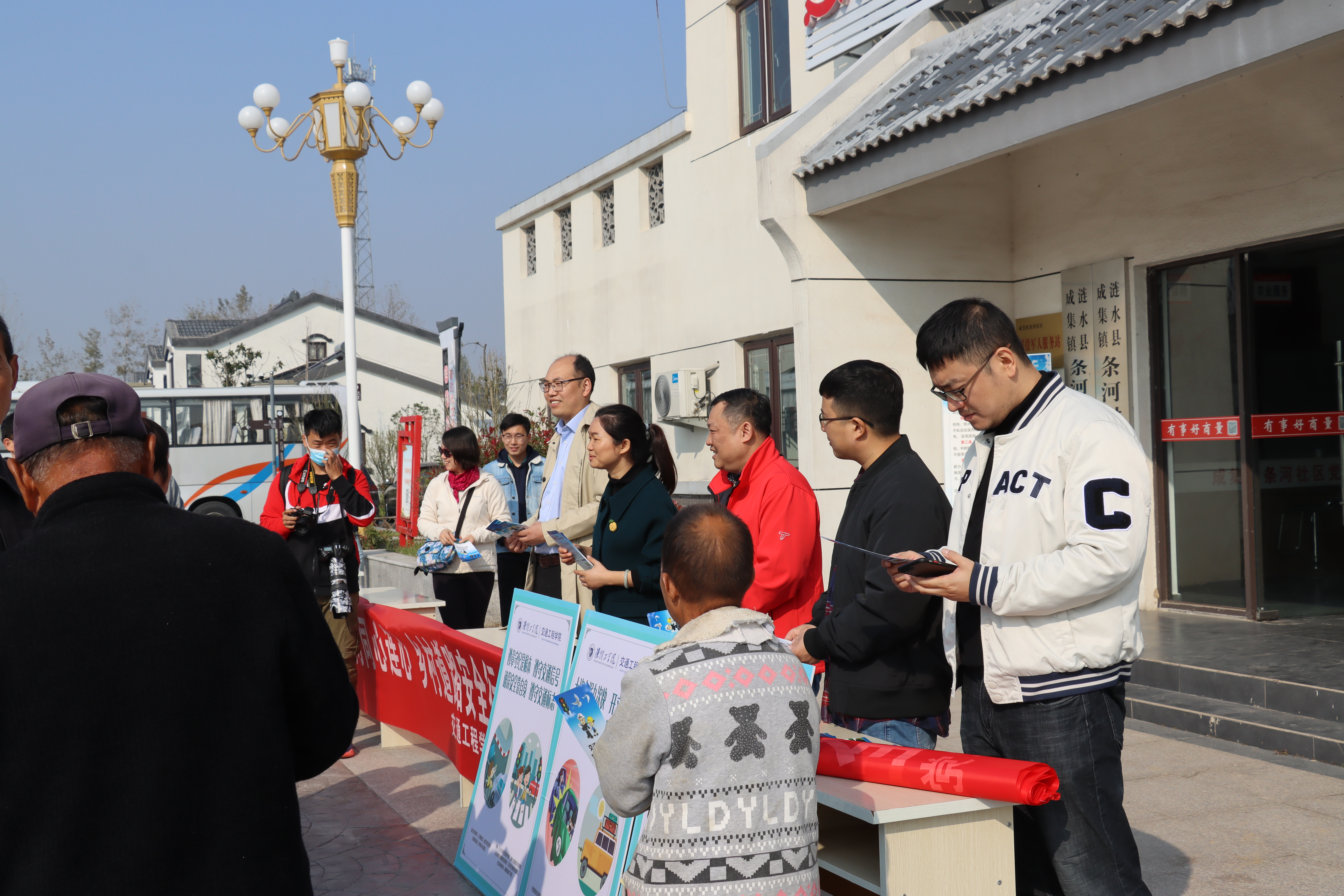 学院第三党支部书记、运输系主任胡思涛就农村公路及客运发展形势、农村公路安全特性、农村客运安全需求分析三方面作了科普讲座;学院老师为前来听讲座的居民分发《交通安全手册》,并通过宣传展板对“交通安全 文明出行”相关知识进行了宣讲。
