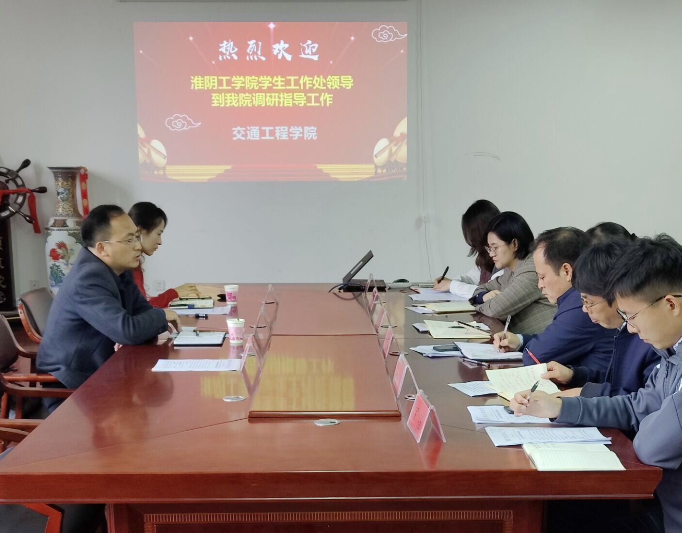 2021年11月4日下午2:30,淮阴工学院学工处处长张常新、副处长李江红来到交通工程学院调研指导工作,交通工程学院党委书记桑海云,副书记余文明和辅导员参加活动。