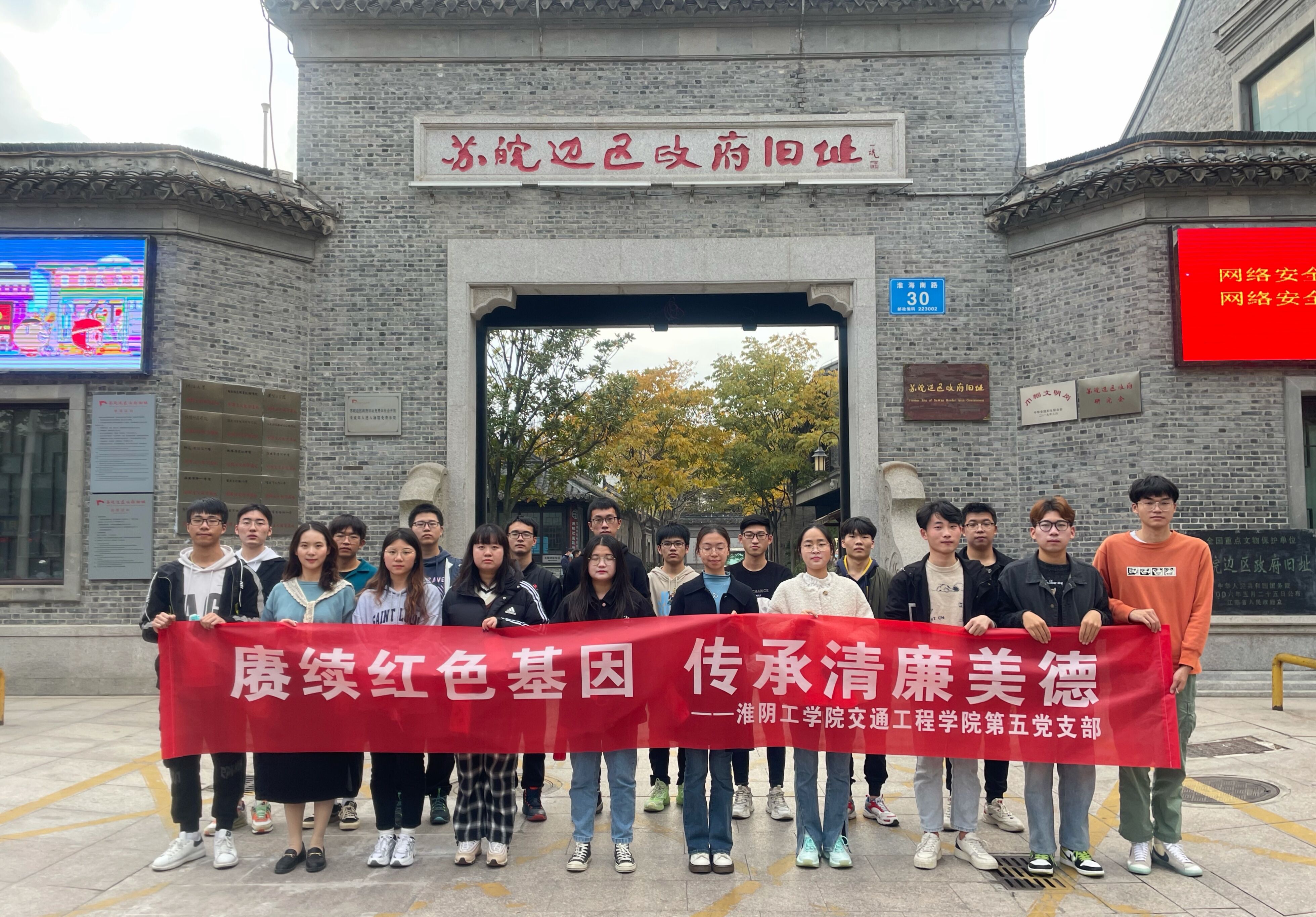 为了深入学习百年党史,充分利用地方红色资源,挖掘党史廉洁元素,赓续红色基因、传承清廉美德,增强师生廉洁自律意识,交通工程学院第五党支部前往清晏园和苏皖边区政府旧址组织开展“学党史 讲廉洁”活动。