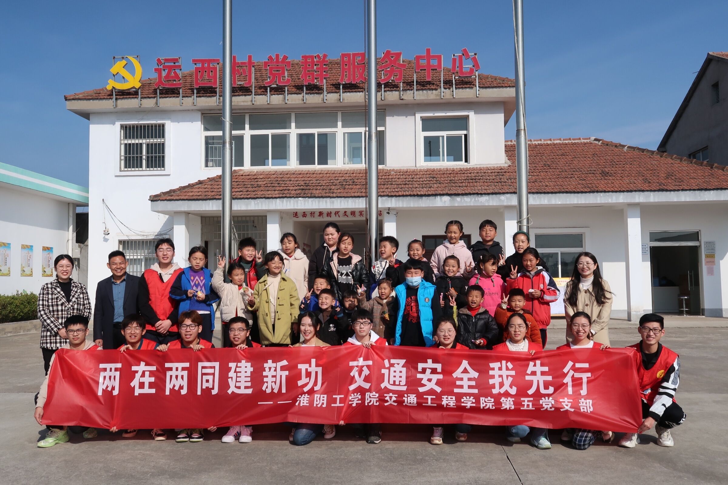 为充分发挥学生党员为群众办实事的服务作用,宣传交通安全知识,提高儿童安全意识,2021年11月20日上午,交通工程学院第五党支部来到黄码镇运西村开展“送安全进乡村”活动。