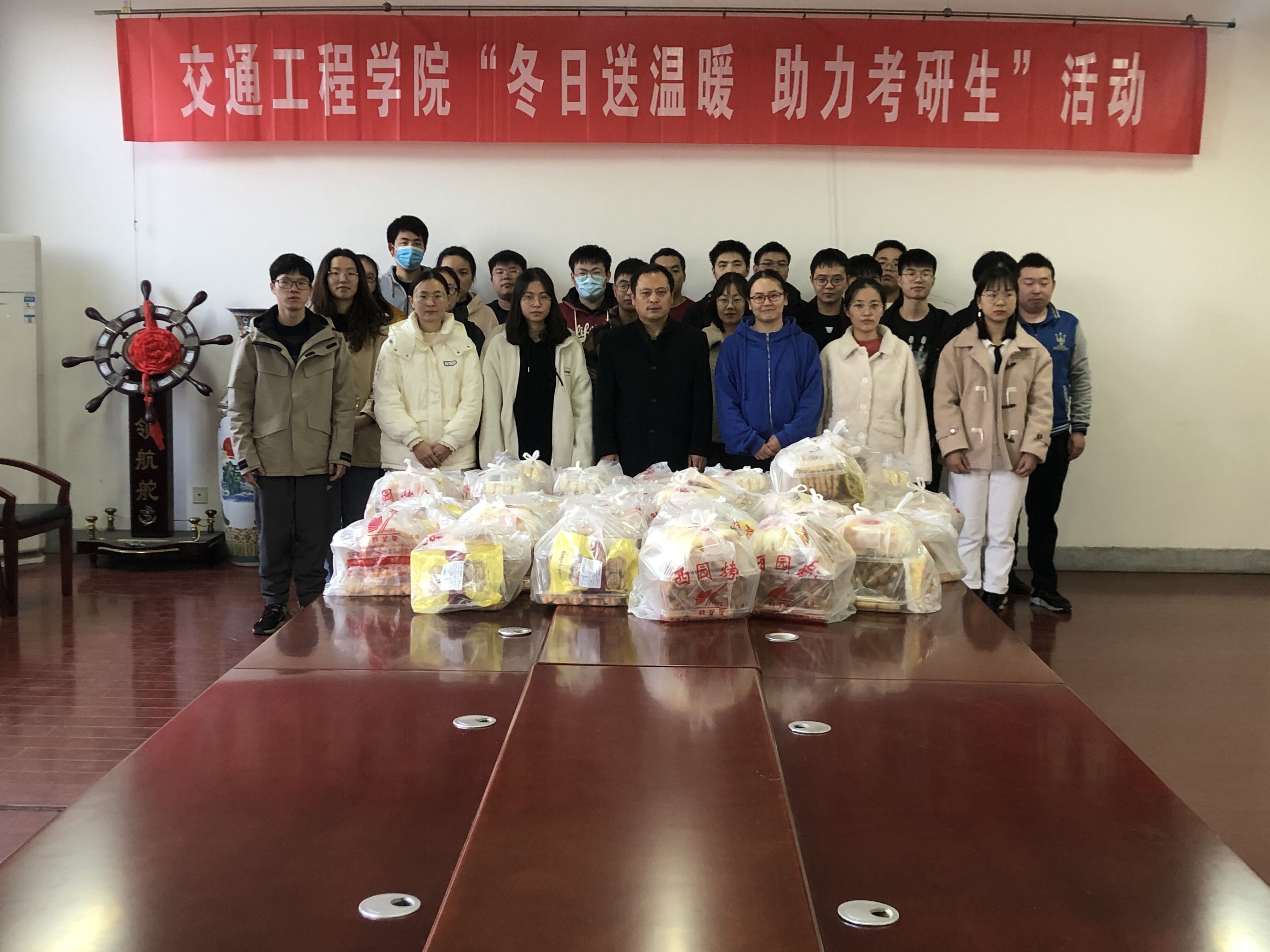 2021年11月20日上午10点,交通工程学院于行远楼会议室开展“冬日送温暖 助力考研生”系列活动,为考研学生“加油”!院党委副书记、副院长余文明,辅导员耿纪莹以及学院考研学生参加了本次活动。