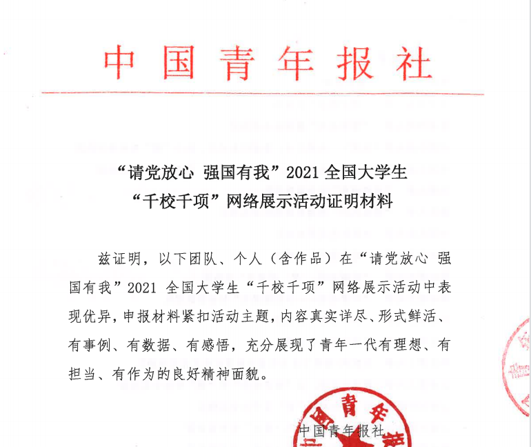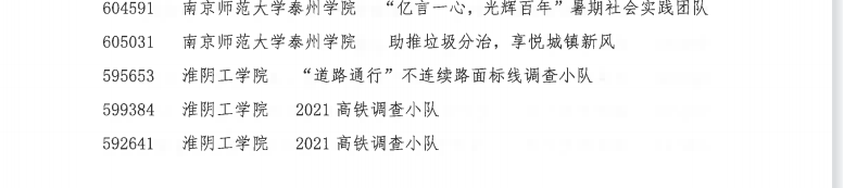 1.千校千项团队风采奖 2.2021淮阴工学院暑期“三下乡”社会实践优秀调研报 |