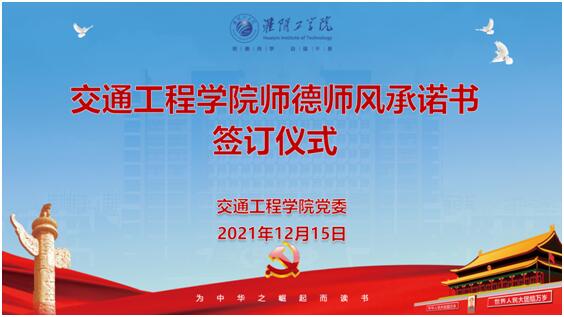 2021年12月15日,交通工程学院党委举行师德师风承诺书签订仪式。交通工程学院党委班子成员以及交通工程学院全体教师出席本次活动,本次活动由余文明主持召开。
