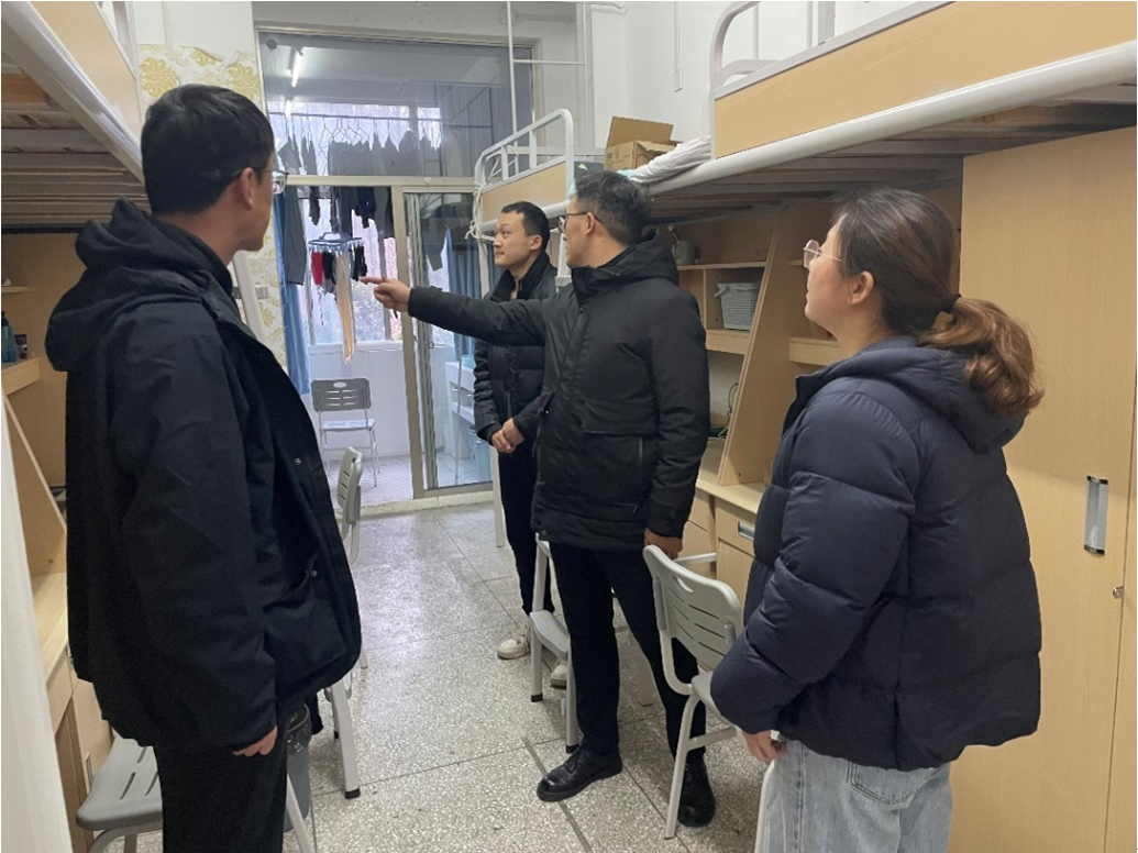 戴建国与朱俊还多次走访宿舍,认真检查各位同学的宿舍环境及安全状况,提醒大家注意个人防护和人身财产安全,并与大家进行了深入交流,了解学习生活情况和具体困难。戴建国强调,目前疫情防控不容松懈,希望各位同学积极配合学校当前防疫安排,非必要不外出、不聚众,严格进行健康打卡,保持宿舍通风与内务整洁;同时提醒大家积极防疫的同时也要及时与导师进行沟通交流,按时完成自己的学习与科研任务;在符合防疫政策的情况下加强运动,强健体魄,为学习和科研攻坚奠定基础。