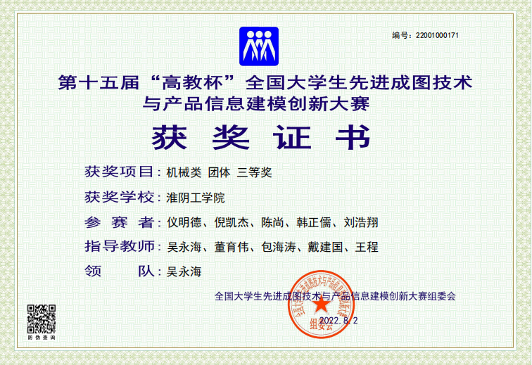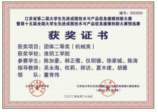 全国大学生先进成图技术与产品信息建模创新大赛是由教育部高等学校工程图学课程教学指导委员会、中国图学学会制图技术专业委员会和中国图学学会产品信息建模专业委员会联合主办的图学类课程最高级别的国家级赛事,被誉为“图学界奥林匹克”。近年来,我院积极组织学生参加各类学科竞赛,以赛促教、以赛促学、以赛促改。本次大赛成绩的取得,充分展现了我院学子在先进成图技术与产品信息建模方面的实践动手能力、综合设计能力以及团队协作精神。