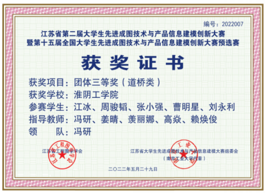 整个赛事包含校级预选赛、省级预选赛、国家级决赛等三个阶段。淮阴工学院交通工程学院在吴永海、包海涛、姜晴、冯研等老师的辛勤付出以及全体参赛同学的共同努力下,选拔出机械类12人、道桥类6人参加省级比赛,并获得机械类获团体二等奖1项、个人全能二等奖6项、三等奖3项,道桥类团体三等奖1项。