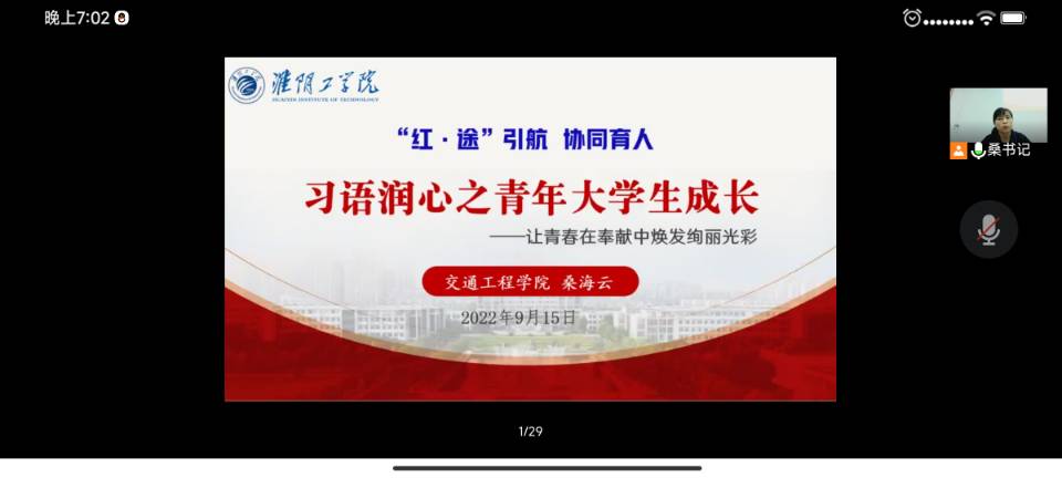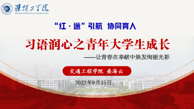 为扎实推进交通工程学院“‘红·途’引航 协同育人”党建品牌建设,促进青年大学生的健康成长。9月15日晚,交通工程学院在线上线下同步开展了“习语润心之青年大学生成长”专题报告会,报告由学院党委书记桑海云教授主讲,学院2022级全体新生听取了报告。