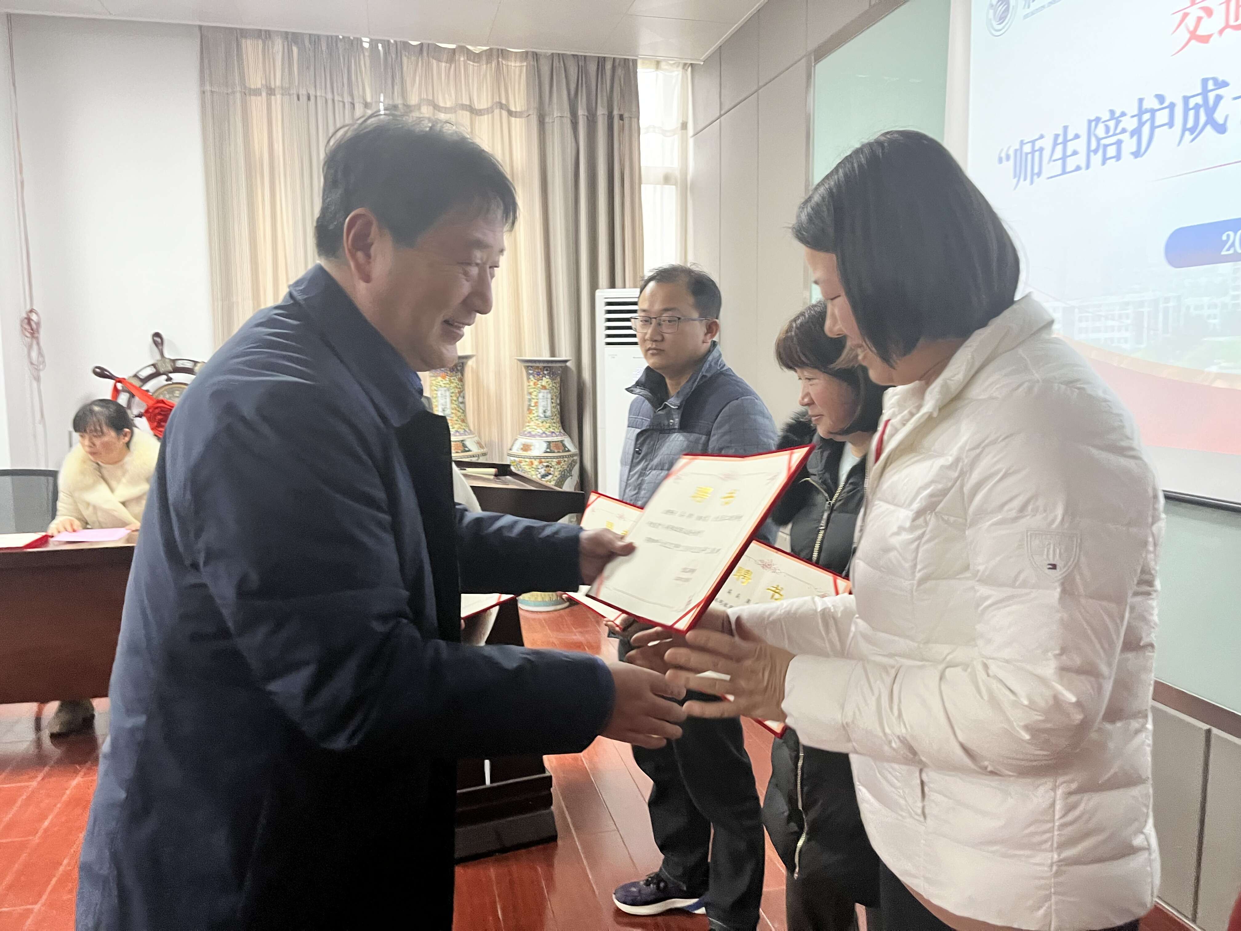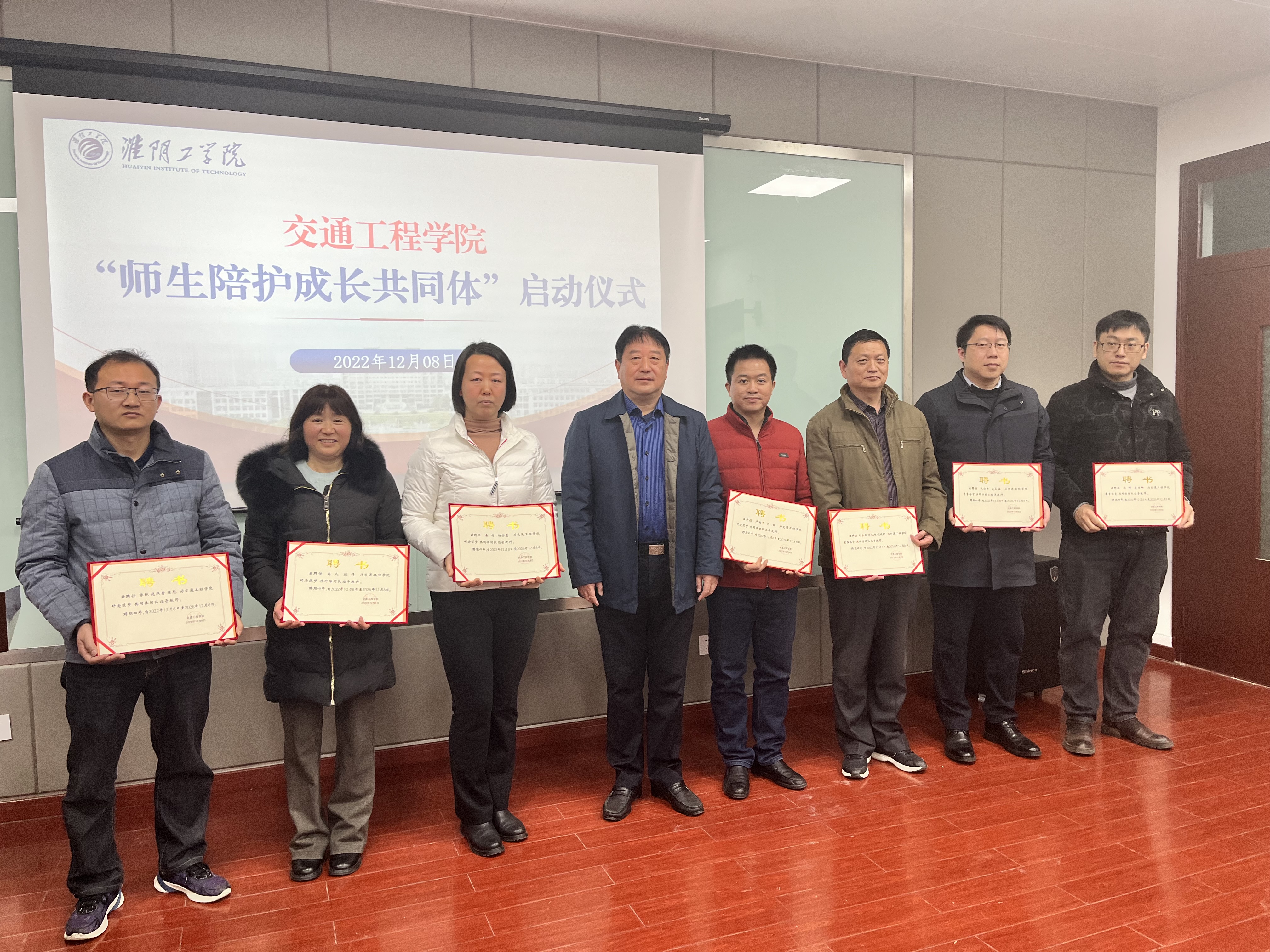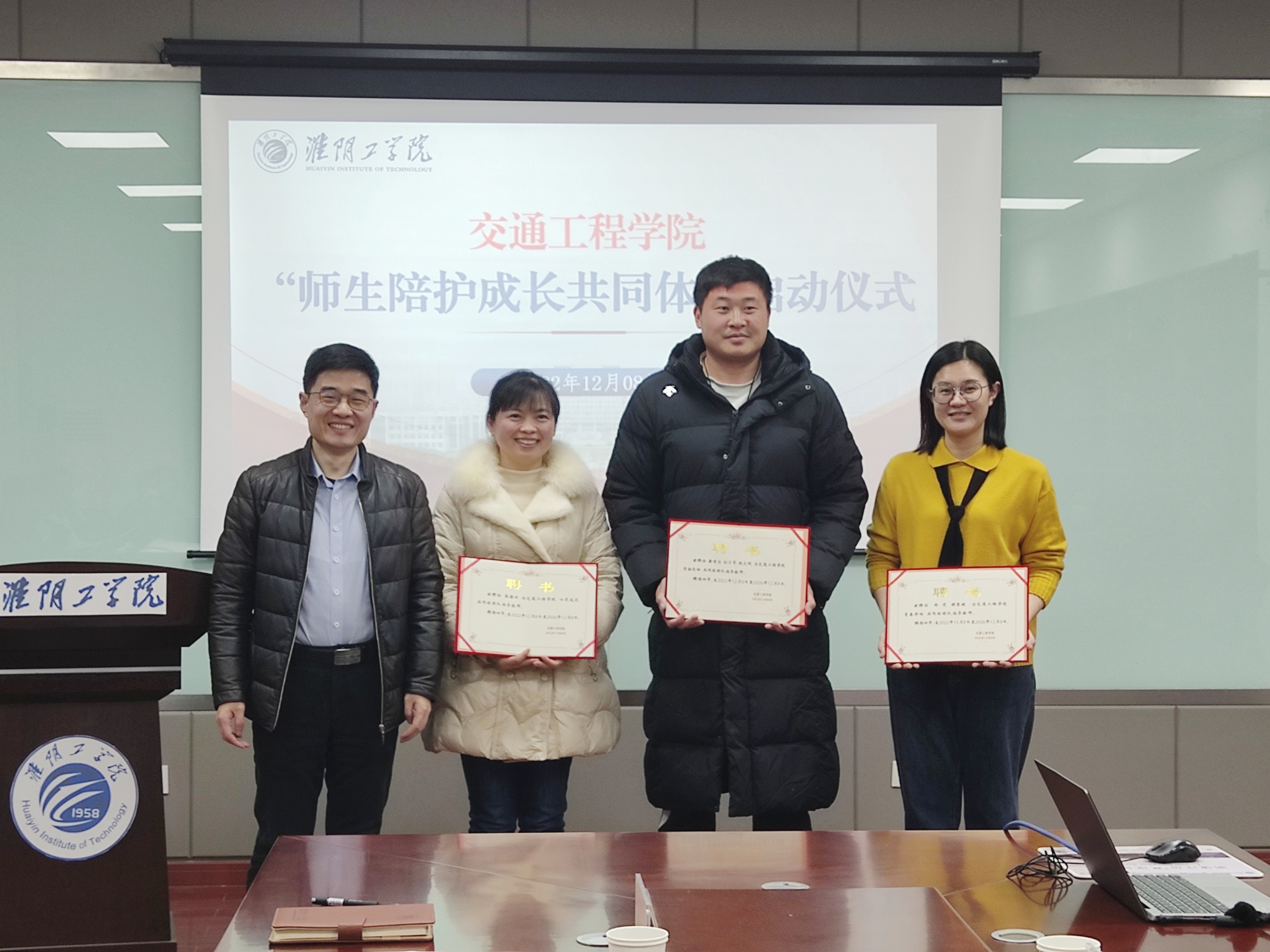 朱晓文副校长、学工处张常新处长、交通工程学院包旭院长分别为师生陪护成长共同体团队颁发聘书。
