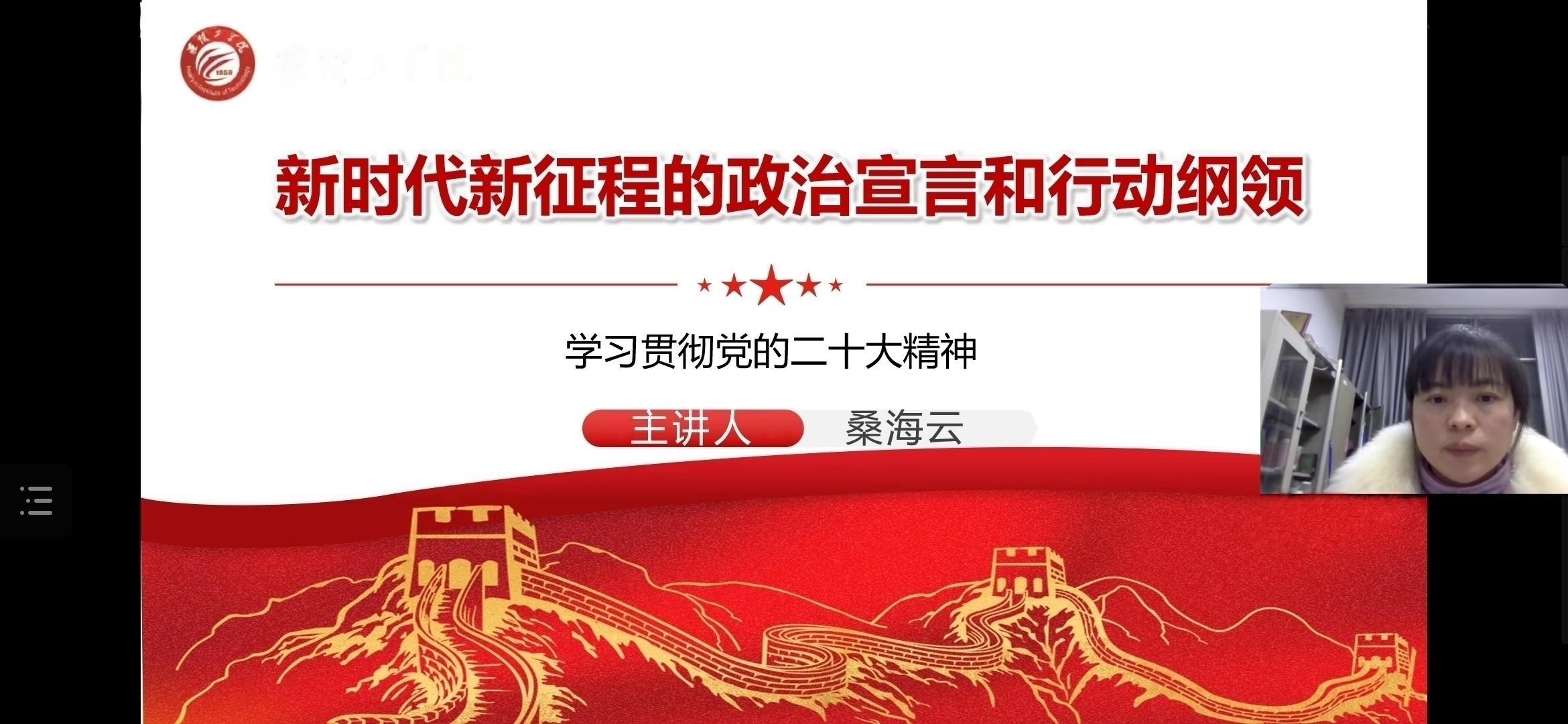 2022年12月14日晚,交通工程学院在腾讯会议上开展了以《新时代新征程的政治宣言和行动纲领》为题的党的二十大精神宣讲讲座。讲座由交通工程学院党委书记桑海云主讲,21级和22级的部分团员参加。