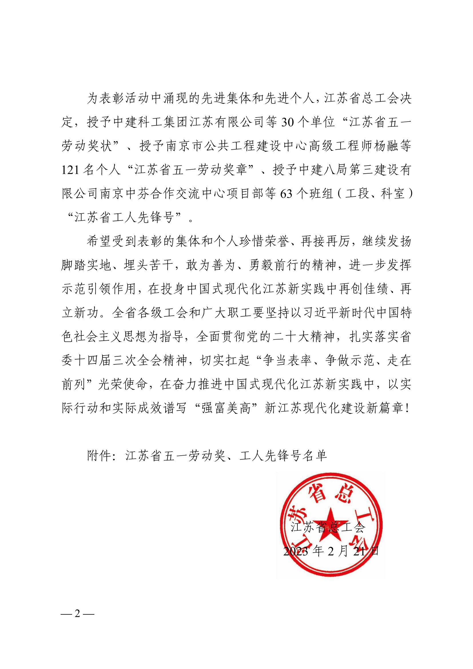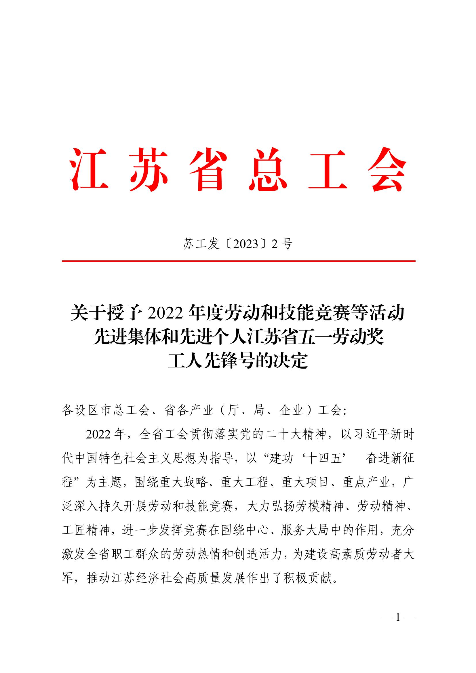 日前,江苏省总工会发布了苏工发〔2023〕2号《关于授予2022年度江苏省劳动和技能竞赛先进集体、先进个人江苏省五一劳动奖、工人先锋号的决定》,我院郑绍元同志荣膺“江苏省五一劳动奖章”。