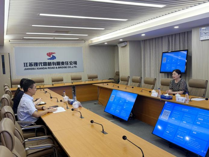 图1 与江苏现代路桥有限责任公司就校企合作现场交流