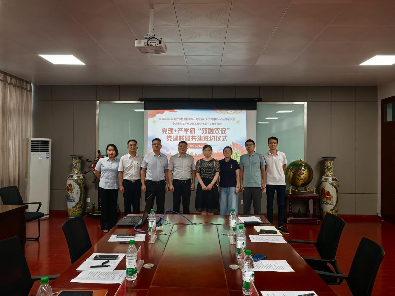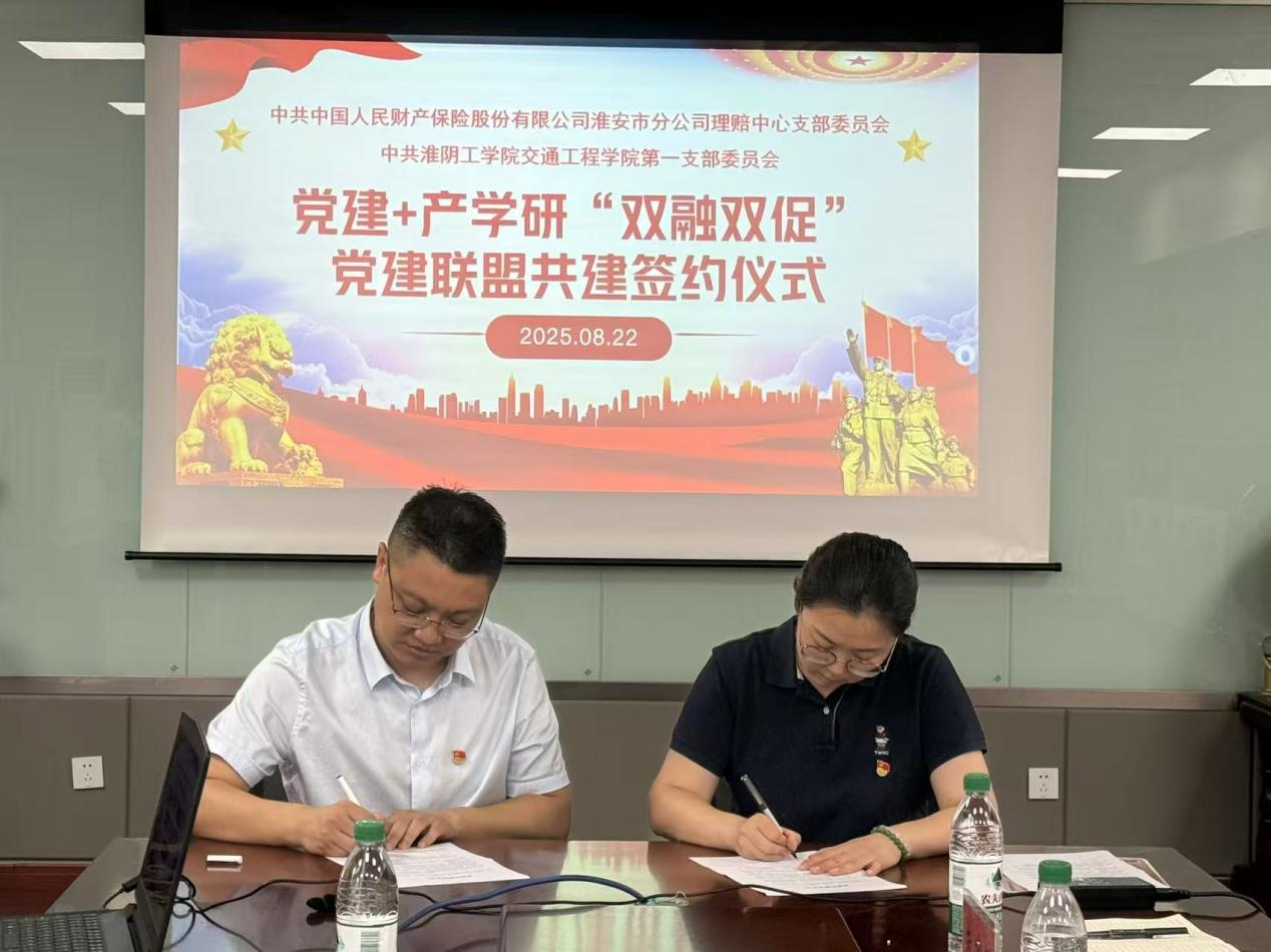 8月22日,交通工程学院与中国人民财产保险股份有限公司淮安市分公司在24号楼217会议室成功举行“党建+产学研”双融双促党建联盟共建签约仪式。学院党委书记桑海云,中国人保淮安市分公司党委委员、总经理助理刘西等人参加此次仪式。