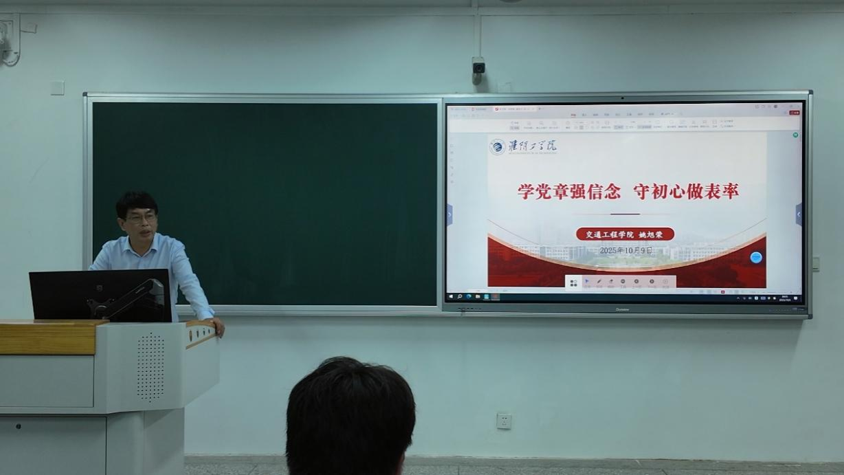 2025年10月9日晚,淮阴工学院交通工程学院在22408教室开展了【信仰公开课】——交通工程学院青马工程培训班第二讲:“学党章强信念,守初心做表率”主题团课活动。本次团课由交通工程学院党务秘书姚旭荣老师主讲。