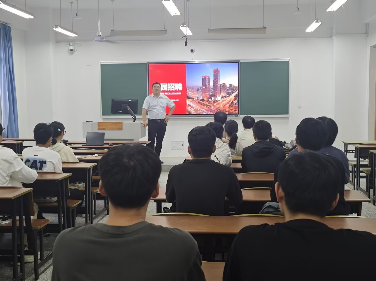 招聘会上,公司经理顾佳煜系统介绍了公司基本概况、招聘组织框架、招聘岗位信息等,并重点讲述了公司的福利待遇和员工职业发展路径。随后,同学们就入职培训、不同城市调岗、岗位是否卖保险等问题与顾经理进行交流,很多同学积极投递简历,参与后续的面试环节。