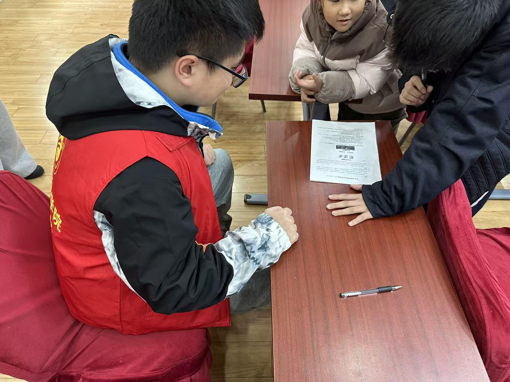 活动现场,支部党员主动亮身份、践使命,化身 “社区志愿讲师” 与 “暖心陪伴者”,精准对接社区青少年成长需求,精心设计了 “趣味知识小课堂” 与户外互动实践两大核心环节。在“趣味知识小课堂”上,党员们立足交通工程专业特色,结合孩子们上下学过马路、乘坐公交、路过施工路段等生活场景,用通俗语言拆解道路安全知识:讲解红黄绿交通标识颜色含义、演示“一停二看三通过”过马路步骤,提醒公交出行的候车、乘车要点,让专业内容直观易懂。课堂还穿插“安全知识抢答”“二十大精神小问答” 互动环节,孩子们踊跃作答,现场掌声欢呼声不断,营造出寓教于乐的热烈氛围。