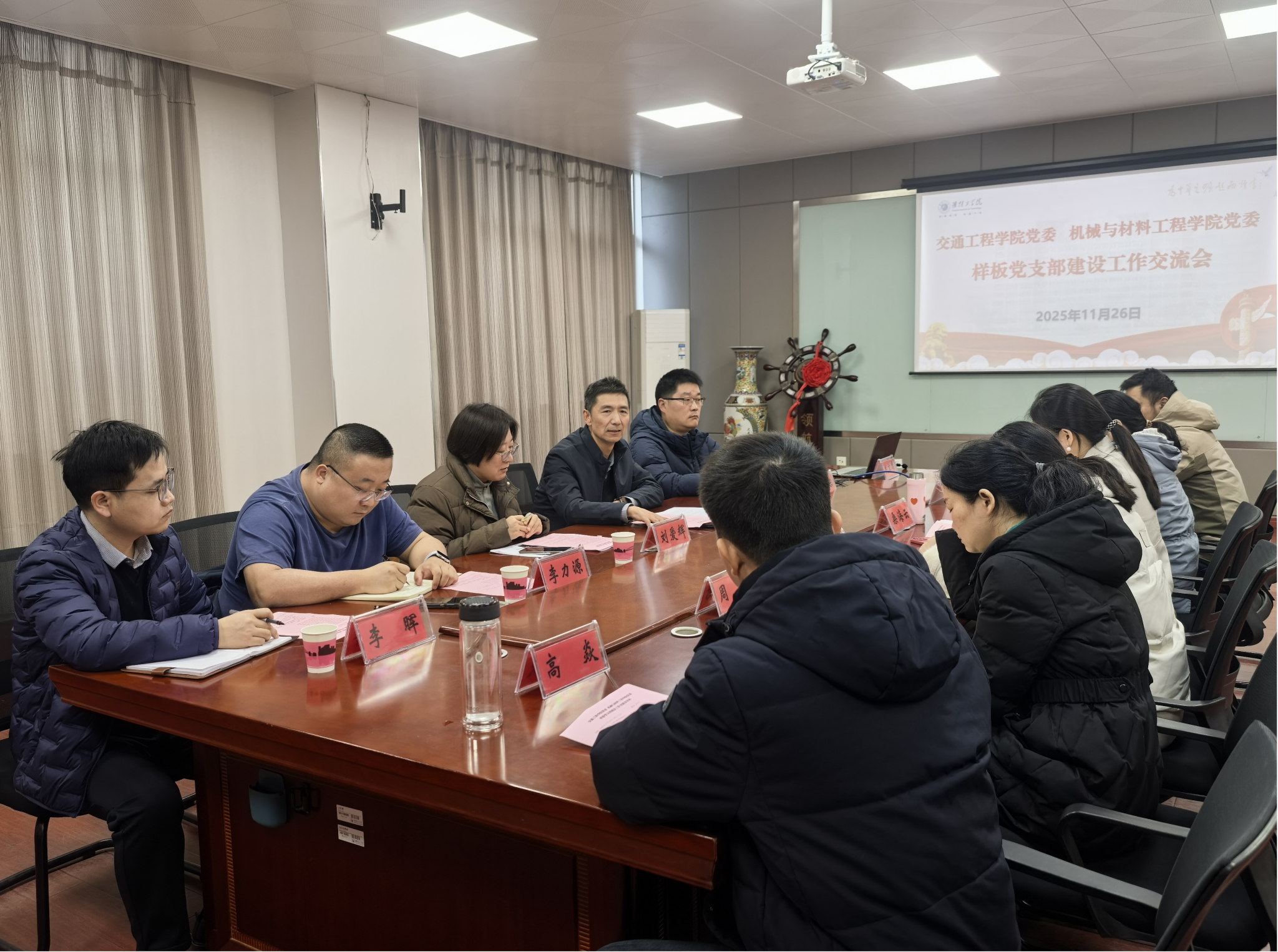 为扎实开展基层党建工作质量提升月活动,进一步激发基层党建活力,提升党支部战斗堡垒作用。11月26日,交通学院党委与机材学院党委在交通学院24213会议室开展样板党支部建设工作交流活动。校党委委员、机材学院党委书记马从兵,全国党建工作样板支部机材学院材料工程系党支部、交通学院全体党支部书记及教师党员代表参加了会议。交流会由交通学院党委书记桑海云主持。