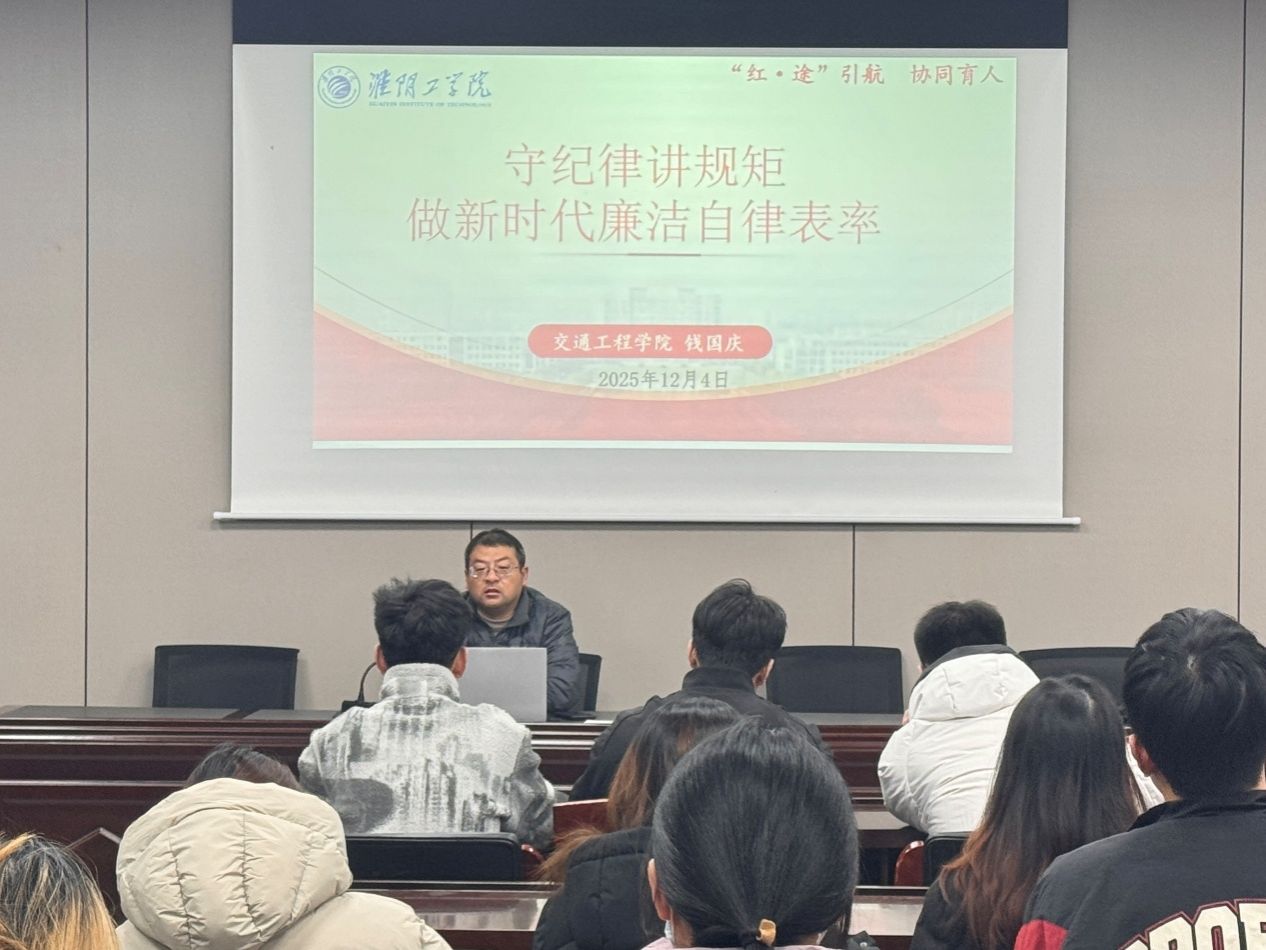 2025年12月4日晚,交通工程学院在24217举办了“党纪、党规学习”专题党课,党课由交通工程学院党委副书记钱国庆主讲,分党校学员参加了学习。