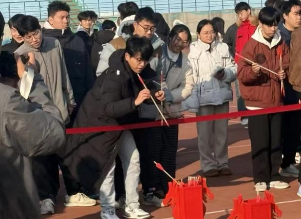 在集体项目中,交通学子配合默契、气势如虹。竞速舞龙赛道上,队员们步伐矫健、龙身飞舞,展现力与美的交融;拔河赛场呐喊震天,大家心往一处想、劲往一处使,以必胜的决心凝聚团队力量;“8”字跳长绳环节,队员们穿梭如燕、衔接流畅,默契的配合划出活力的圆弧;投壶区内,选手们沉着凝神,每一次投掷都是对技巧与心态的考验;抛绣球赛场笑语连连,默契的传递与精准的接投交织成趣;旱地龙舟更是趣味横生,队员们节奏一致、奋勇向前,在协调中冲刺。