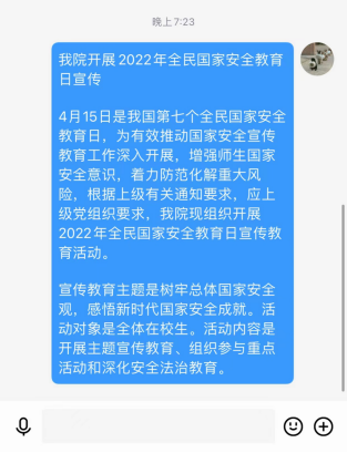 4月15日是我国第七个全民国家安全教育日,为有效推动国家安全宣传教育工作深入开展,增强师生国家安全意识,着力防范化解重大风险,根据上级有关通知要求,管工学院周密组织开展2022年全民国家安全教育日宣传教育活动。