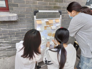 疫情无情人有情。活动期间,同学们积极参与,凡是路过的同学,都会停留下来写一份传达温情的小卡片,亲手粘贴在板上。他们用一杆笔,一张贴纸将激励、鼓励他人的话,以及对疫情早日结束的期盼记录下来,并进行分享。用以温暖更多的人。