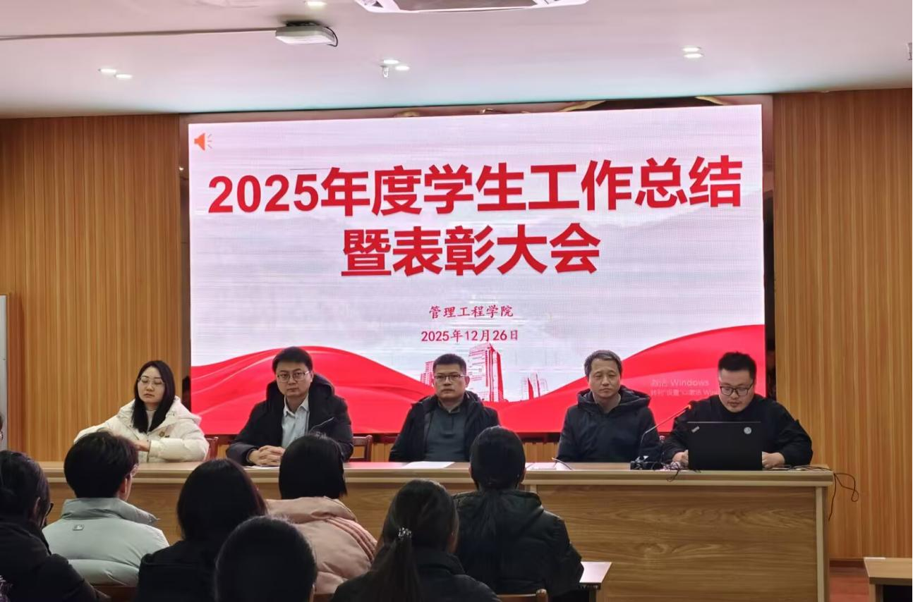 为系统回顾2025学年学院在思想教育、学风建设、科技创新、社会实践、文体活动、组织管理及学生服务等方面取得的显著成效,全面梳理育人工作的创新举措和宝贵经验,并对年度优秀集体和个人进行表彰,进一步激发全院学生的学习热情、创新精神和集体荣誉感,12月26日,管理工程学院2025年度学生工作总结暨表彰大会在文博楼报告厅隆重召开,学院党委书记李继林、副书记赵坚、副院长刘长平出席大会。各年级辅导员、获奖集体和个人、全体学生组织、各年级学生代表共同参会。大会由学工办主任吴春荣主持。