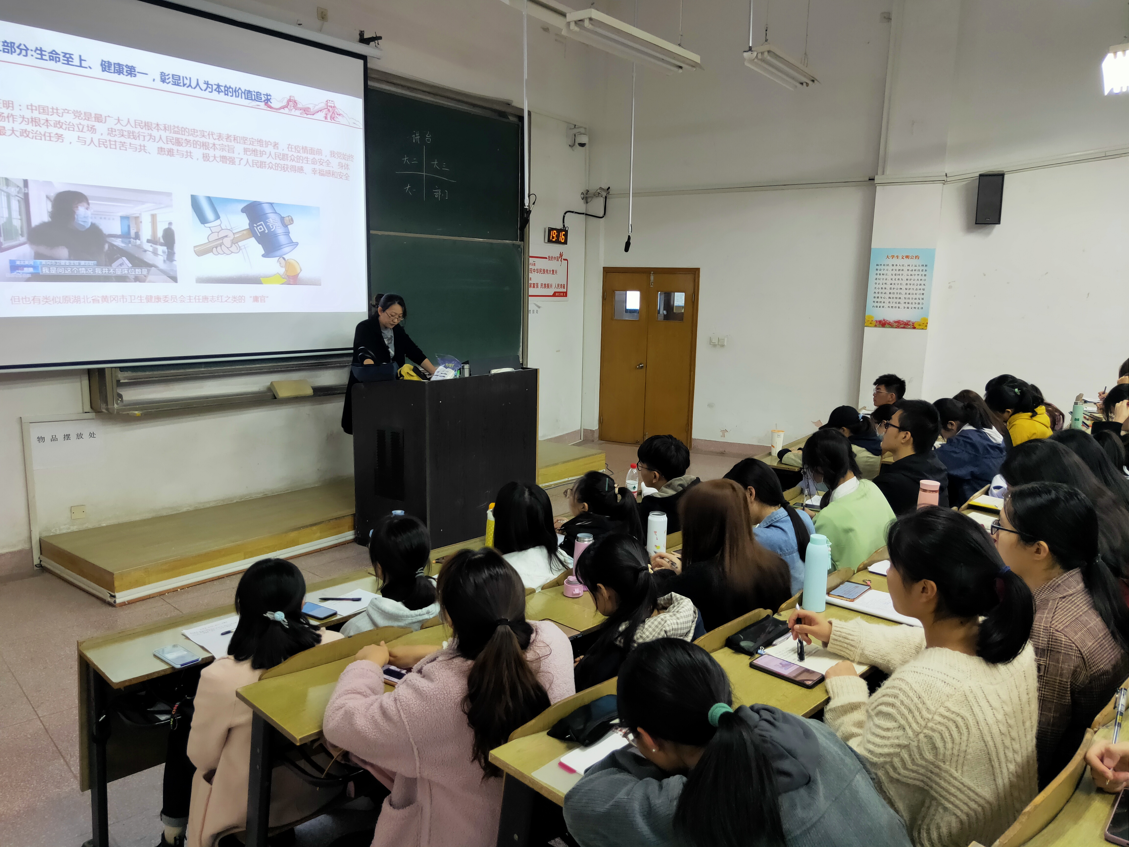 课上,邓书记先带领同学们回顾了全国人民抗疫的情形,重点突出透过疫情,我们应当看到什么,并指出各方统一部署与协调,彰显了党中央统一领导的体制优势;生命至上、健康第一,彰显以人为本的价值追求,和全民动员、凝聚智慧,彰显密切联系群众的路线方法。邓书记讲述了抗疫人员的舍己为人精神,围绕了我们身边最美淮工人的事例,强调了众志成城的结果。很好地向在座同学传递了以人为本精神,引起同学们的热烈反响。最后,邓书记号召守纪律讲规矩,激励同学们享受学习和生活坚定信念。并呼吁要克服四种心理,做廉洁自律表率,联系实际深入思考,准确把握内涵要义。