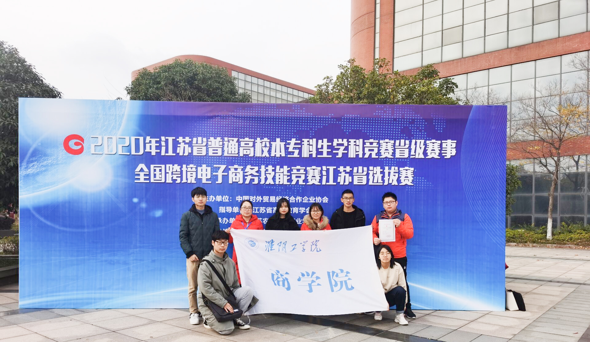 本次竞赛,自11月9日启动报名以来,共吸引全省70所高校大学生参与其中,参与人数再创新高。11月26日晚7点到9点,校赛通过博导平台以线上答题的方式举行,共有126名同学参加校赛,最后由脱颖而出的6名同学组建成两支团队,代表学校参加江苏省选拔赛。12月13日省赛顺利完成,我校学子经过认真准备,激烈角逐,取得了优异的成绩。在曹培红老师和刘月老师的指导下,商学院学生任政、韩乐、彭怀龙(团队名称:浣熊RHP)取得省级二等奖,孙翔、戈欣、柴大卫(团队名称:淮工跨境小组)取得省级优胜奖。