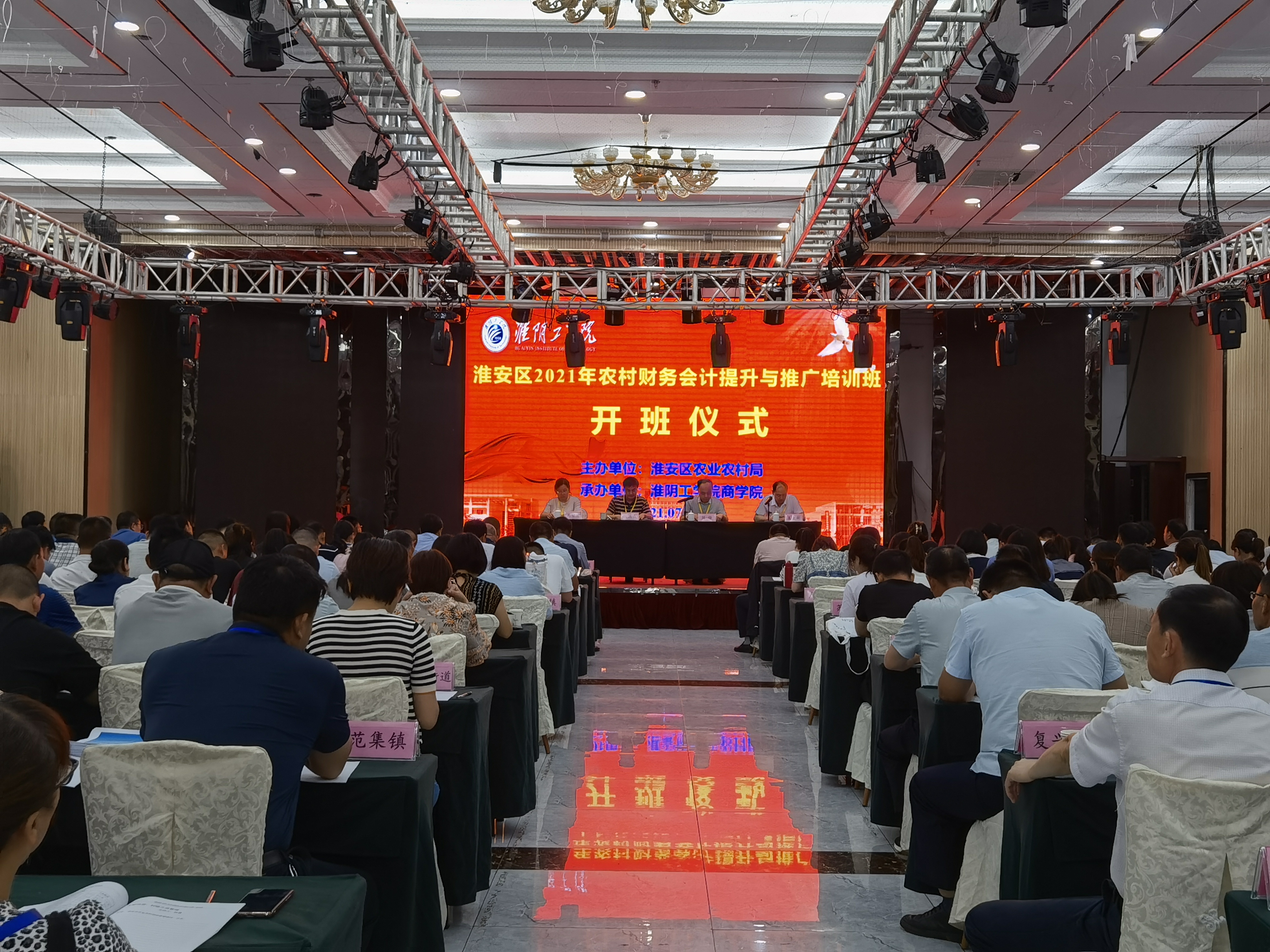 为切实把党史学习教育成效转化为推动经济社会高质量发展的强大动力,全面贯彻落实国家各项财政政策,进一步提高广大农村财务会计执行财政政策水平和情系“三农”办实事、为民服务解难题的能力,近日,淮安区2021年农村财务会计提升与推广人员专题培训班开班仪式举行。商学院院长刘满成教授、淮安区农业农村局副局长周锋等出席开班仪式。