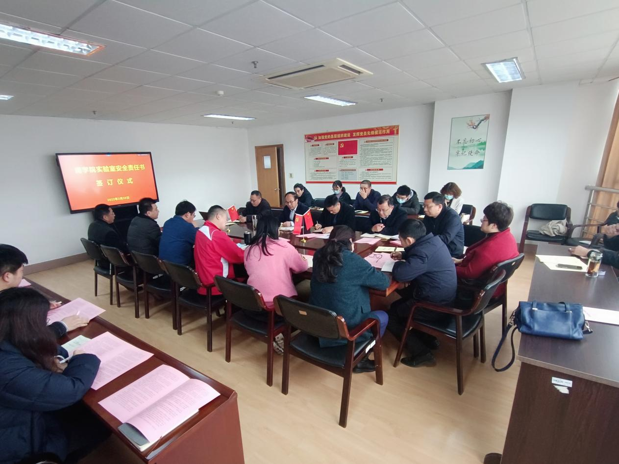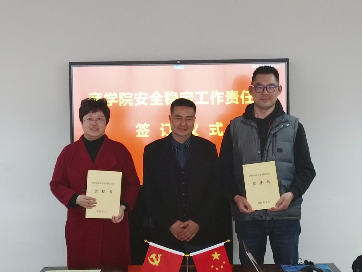 为全面落实学校安全稳定工作决策部署,切实加强风险防控,坚决维护校园安全稳定发展大局,3月30日下午,我院召开安全稳定工作会议,举行安全稳定工作责任书签订仪式。学院党政班子成员,各党支部书记、系主任和科室负责人参加会议。党委副书记、副院长杨向阳主持会议。