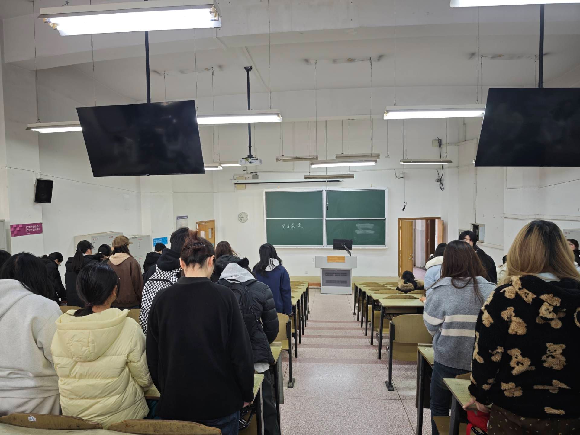 国家宪法日当天,学院组织全体学生开展“晨读宪法”活动。清晨7:30,各班级教室传来朗朗读书声,学生们手持《中华人民共和国宪法》单行本,在领读员的带领下齐声诵读宪法序言及部分章节。活动同步设置“晨读打卡”环节,通过拍摄诵读照片、分享学习感悟等方式增强仪式感。