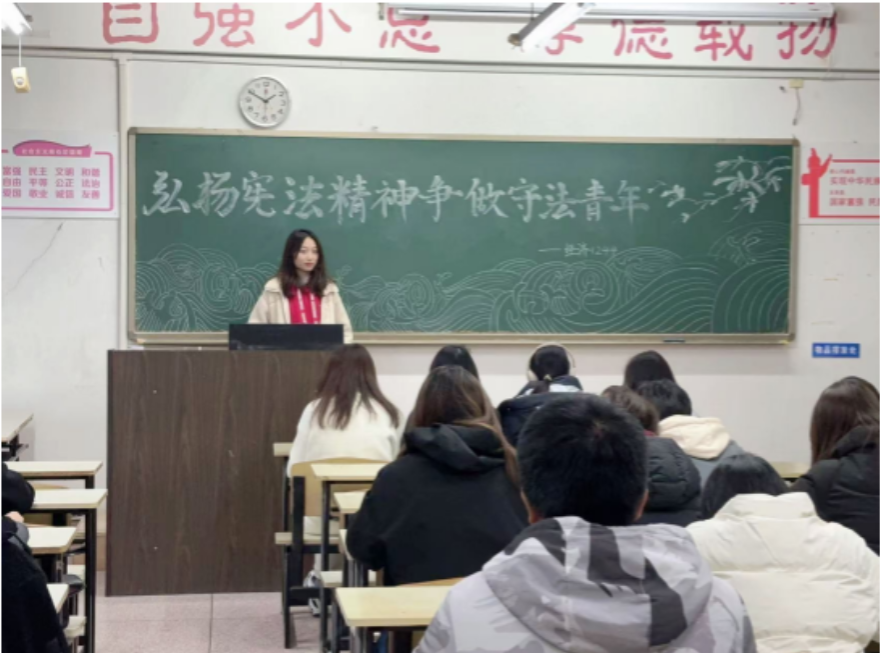 学院依托教育部全国青少年普法网“宪法卫士”平台,组织学生全员参与宪法知识学习与答题活动。建立“日通报、周总结”机制,确保学生完成在线学习任务。各班辅导员利用晚自习时间,针对宪法条文解读、法治案例分析等学生关切问题现场解答,累计开展辅导18场次,参与学生超1000人次。