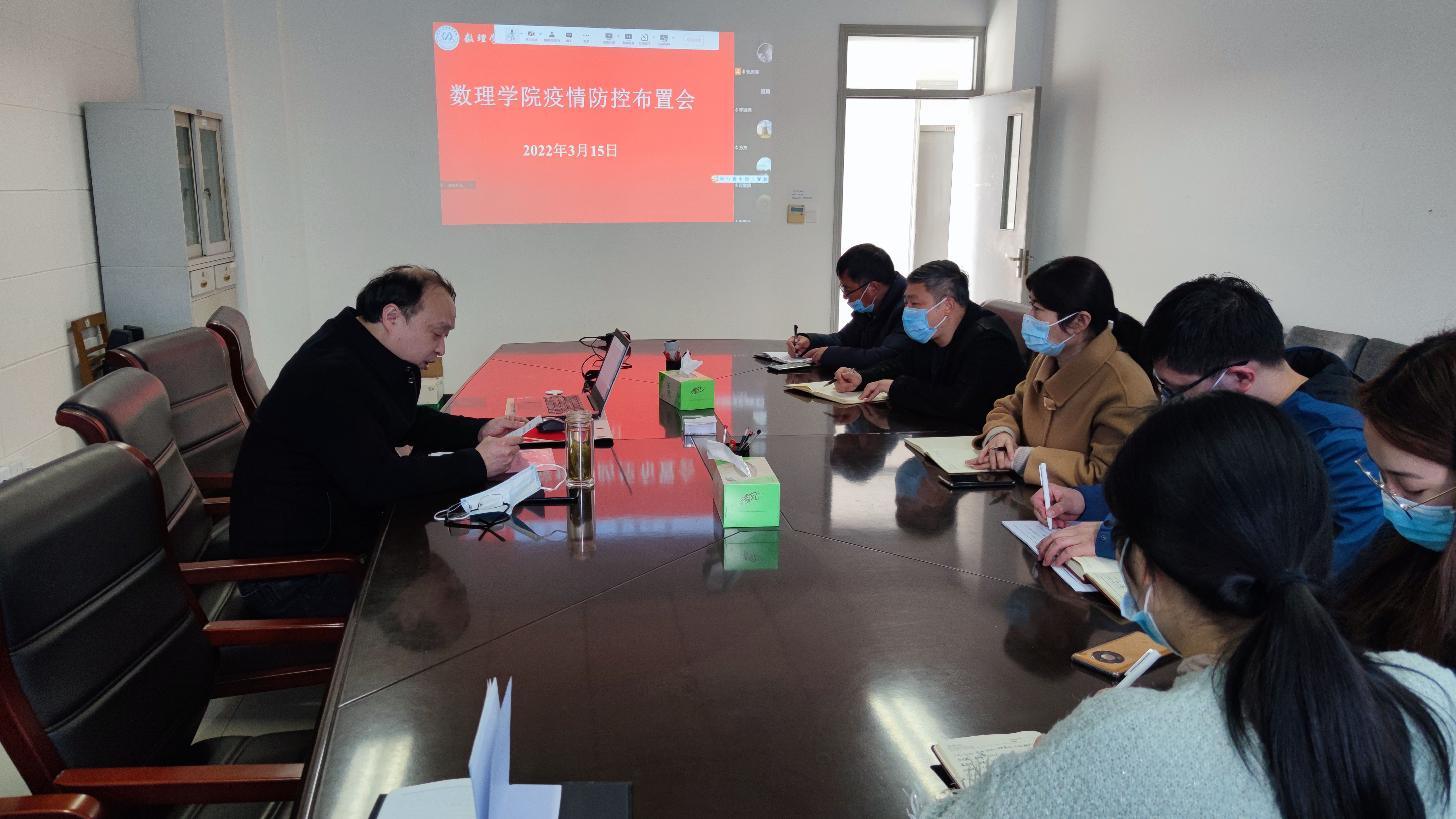 3月15日上午,数理学院在YF701会议室召开疫情防控专题会议。会议由学院院长周广宏主持,学院领导班子成员、办公室主任、学工办主任、党支部书记和全体辅导员参加了会议。