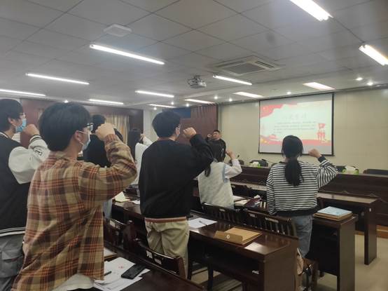 会议开始,全体党员面向党旗,举起右拳,重温了入党誓词,随后一起观看了廉政文化宣传短视频,党员们从毛泽东、周恩来等老一辈无产阶级革命家的廉洁自律小故事中,强烈感受到领袖们的伟大人格魅力,从年轻干部职务违纪违法典型案例汲取到深刻教训。