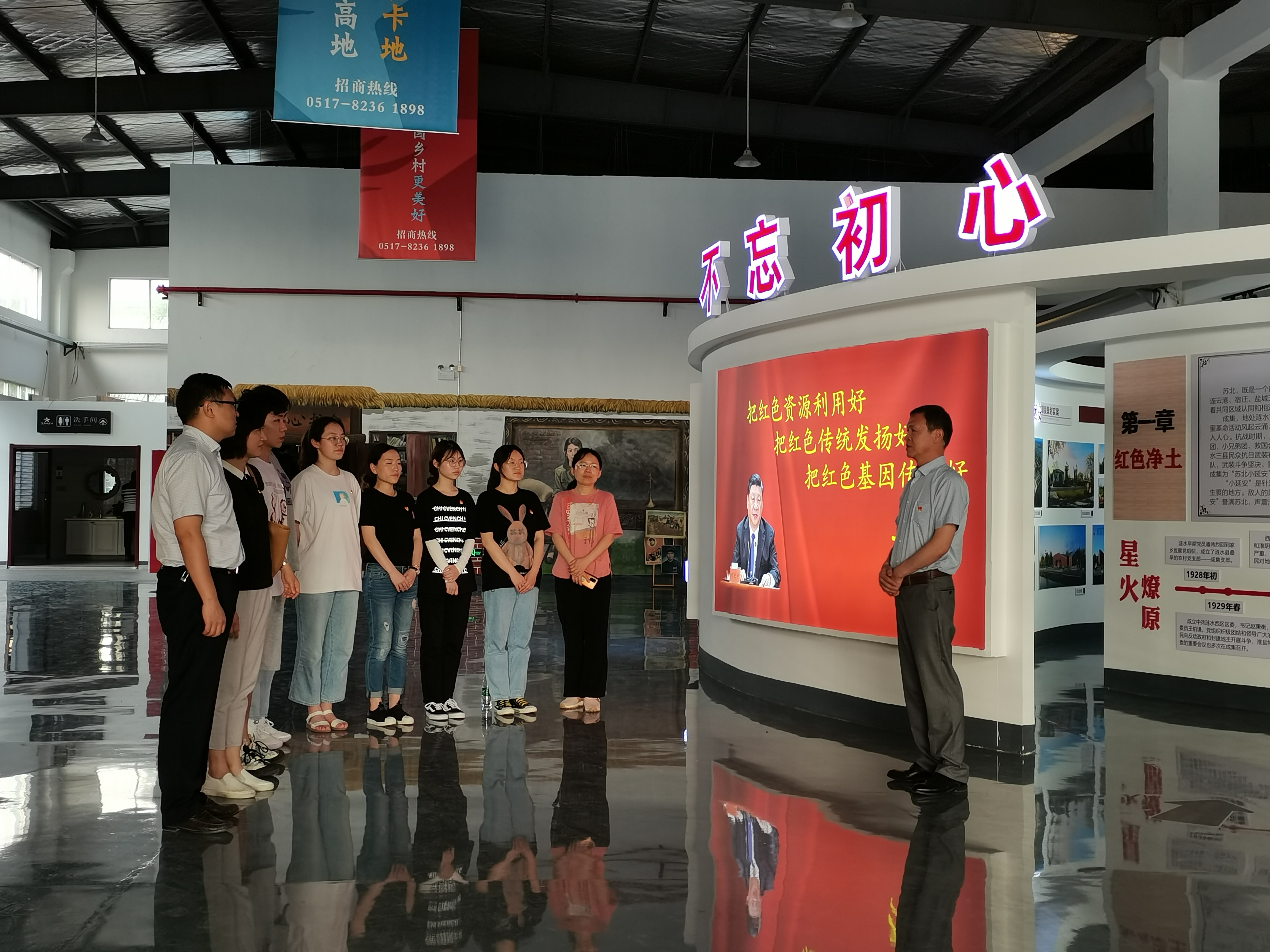 涟水县成集镇被称为“苏北小延安”,抗日战争时期声震淮海,是众多革命志士向往的大后方。这里的人民为抗击日寇浴血奋战,留下许多可歌可泣的英雄事迹,其中的“朱氏三杰”故事,在当地广为流传。抗日战争时期,一支由热血青年组成的抗日武装——抗日兄弟团在成集镇成立,朱启勋盘肠大战、朱启杰从容就义,他们的事迹留下了振聋发聩的回响。在“小延安”,有300余人为抗日牺牲,他们为国家民族舍弃生命、留下信仰,至今照耀后人。面对鲜红的中国共产党党旗,学院分团委书记裴付伟举起右拳,带领新党员庄严宣誓。