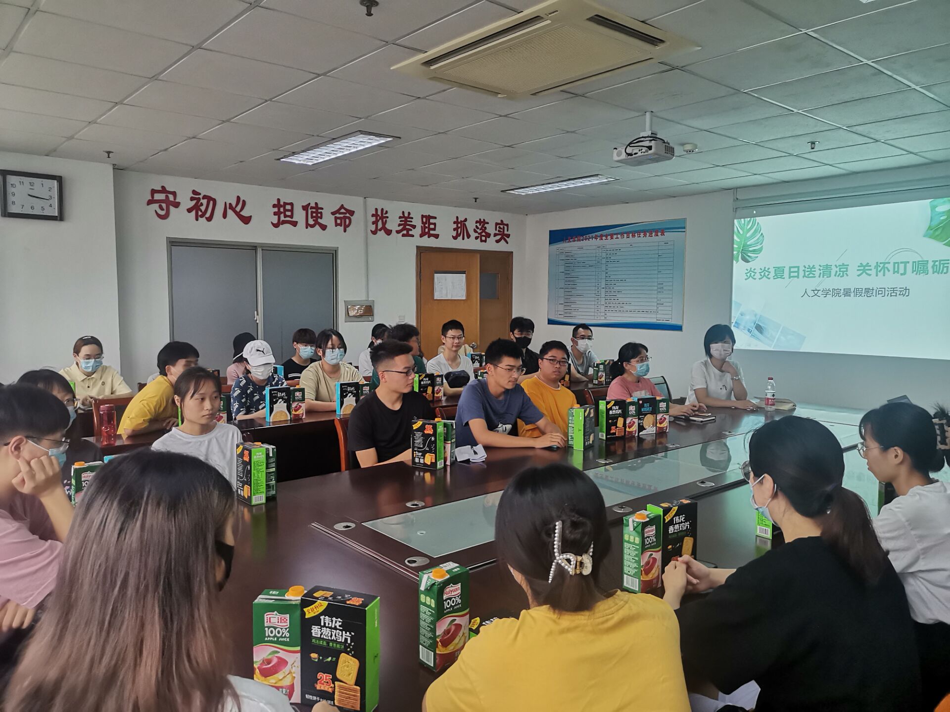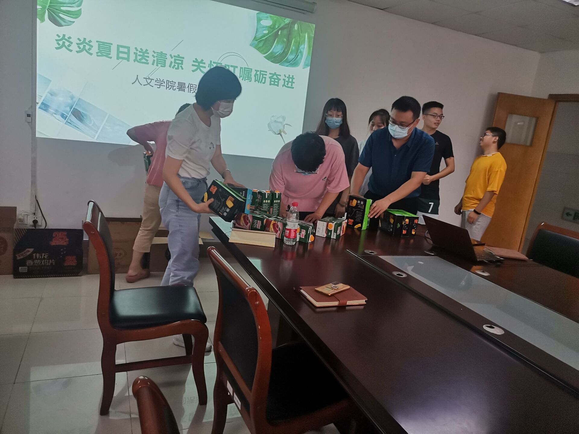 为保障暑期在校学生安全,学生考研工作有序开展,扎实做好暑期疫情防控工作,7月29日,人文学院党委副书记、副院长李晓慧带领辅导员慰问暑期留校学生并送上慰问品。